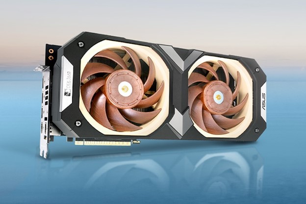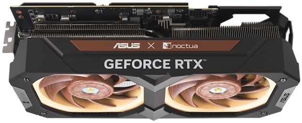 Sabemos que los entusiastas de Noctua se preocupan tanto por la estética de sus montajes como por el alto rendimiento y los bajos niveles de ruido. Hemos creado una cubierta marrón personalizada para el dúo de ventiladores NF-A12x25 que complementa su distintivo esquema de colores y proporciona un sistema de montaje seguro, sin necesidad de bridas. Los logotipos de ASUS y Noctua en la parte frontal y los laterales de la cubierta, junto con los sutiles gráficos de la placa posterior de aleación, ayudan a que esta tarjeta combine a la perfección con otros componentes Noctua del sistema.