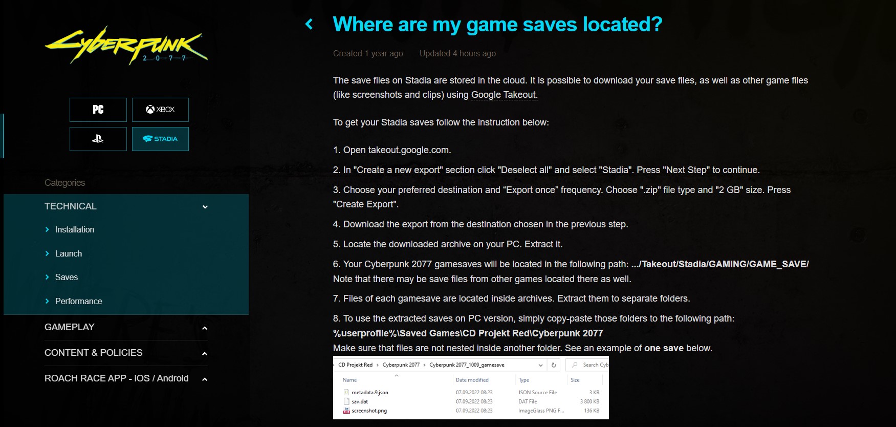 Este pase tiene que realizarse utilizando las aplicaciones Takeout de Google y REDLauncher de GOG. El proceso es algo trabajoso, pero es la única forma de salvar el avance de tu juego en Cyberpunk 2077 y sólo podrá hacerse hasta antes del 18 de enero de 2023, cuando Stadia cierre definitivamente. Luego de esta fecha, las partidas guardadas del servicio de Google se perderán para siempre.