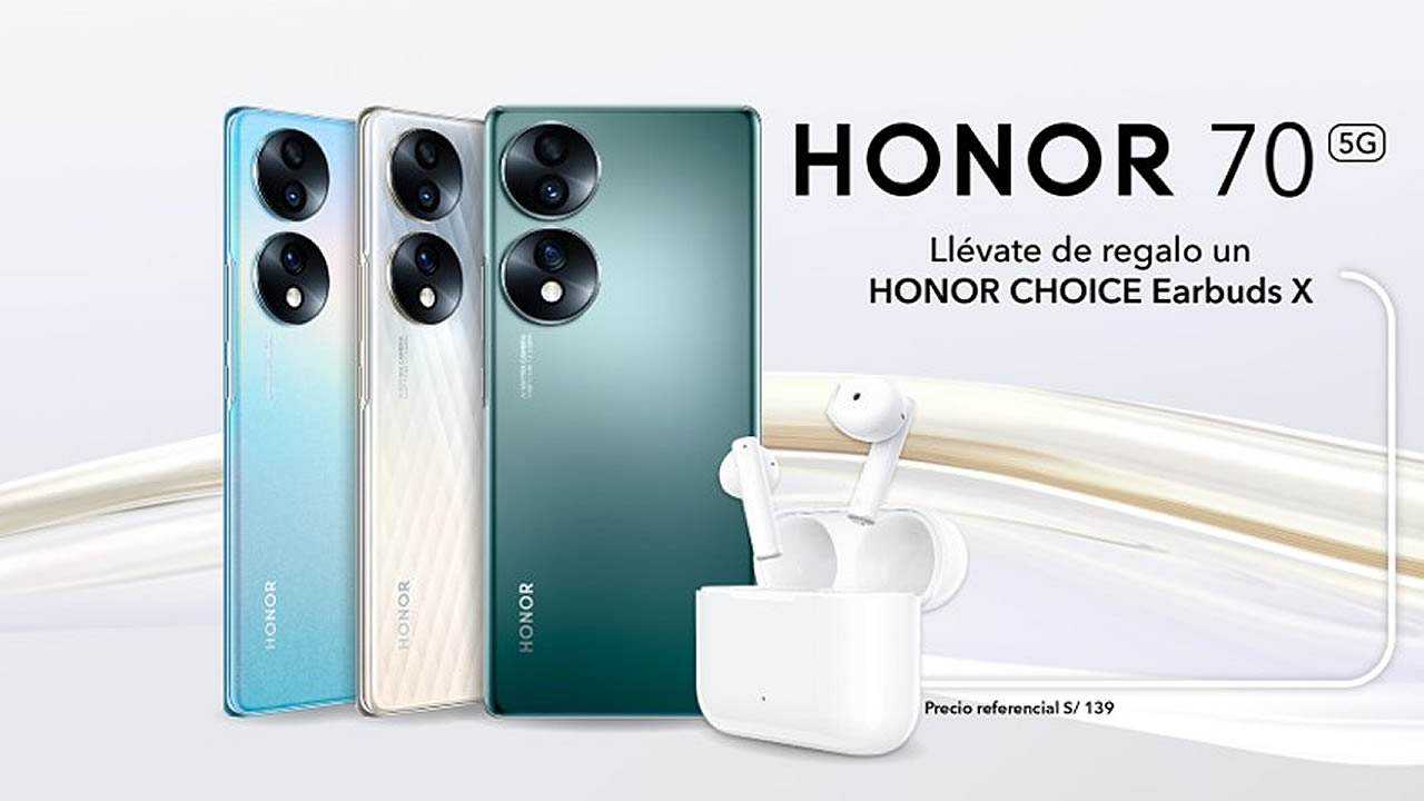 Precio y disponibilidad: El HONOR 70 está disponible en colores Cristal Platino, Verde Esmeralda y Escarcha Mística y por lanzamiento llega con los HONOR CHOICE Earbuds X de regalo. Si quieres conocer los lugares de venta así como el precio específico en cada uno de ellos, puedes visitar www.hihonor.com/pe
