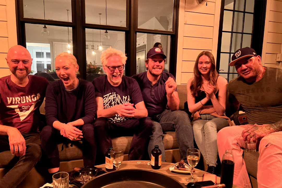 Acompañó el anuncio con una foto donde lo vemos junto a los actores que han participado en la producción como Chris Pratt (Star-Lord), Pom Klementieff (Mantis), Karen Gillan (Nebula), Dave Bautista (Drax), Sean Gunn (Kraglin).