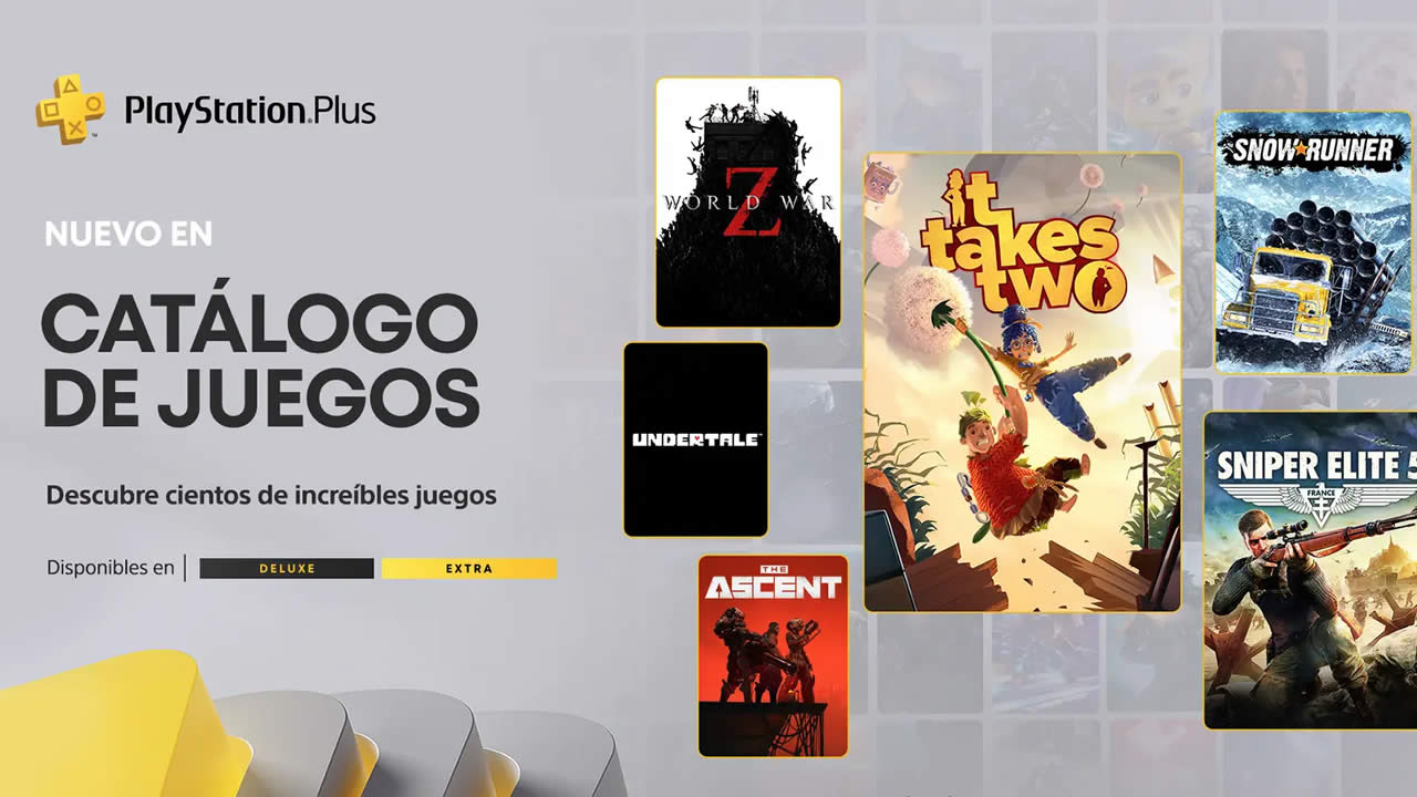 La lista de juegos de este mes incluye dos juegos hoy convertidos en leyenda: It Takes Two, el ganador del Juego del Año en 2021, y el excelente Undertale, un clásico del RPG moderno. También está el aclamado The Ascent, Sniper Elite 5, dos entregas de las franquicias Dynasty/Samurai Warriors y el remaster «rehidratado» de SpongeBob SquarePants: Battle for Bikini Bottom.