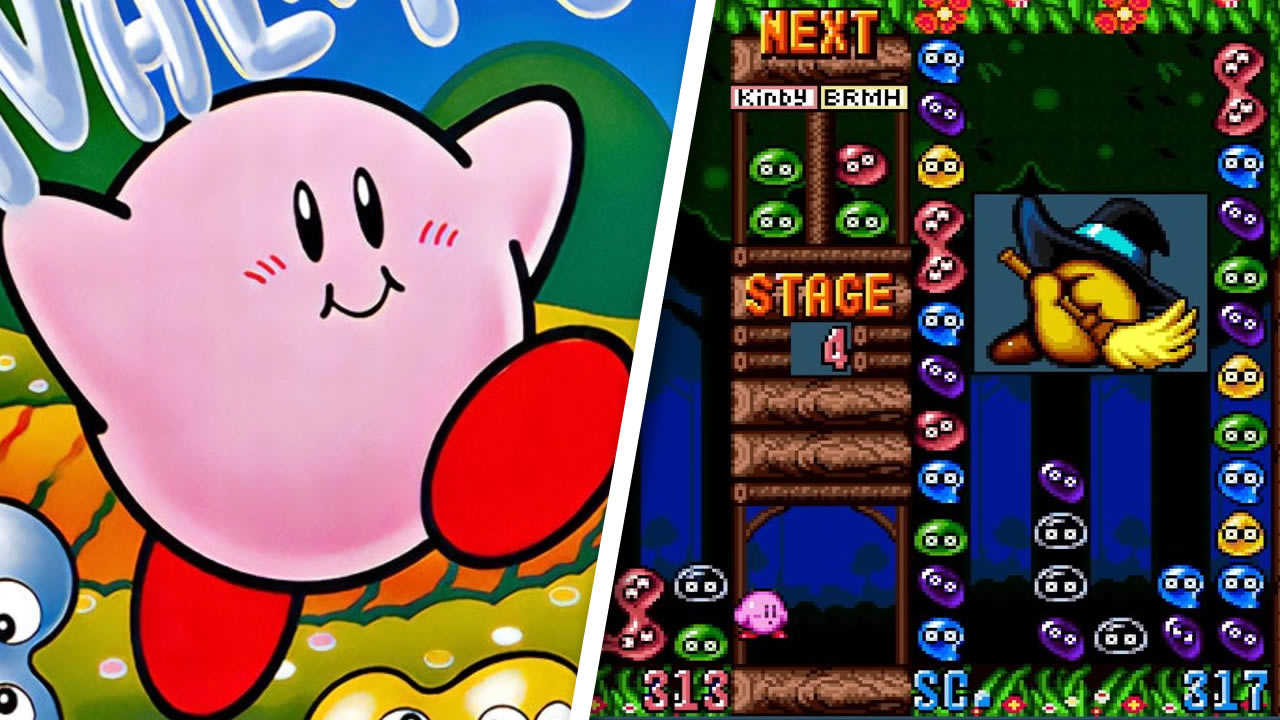 Primero tenemos a Kirby’s Avalanche (SNES), que es básicamente una versión re-brandeada de Super Puyo Puyo de Super Famicom; más o menos como pasó con Panel de Pon y Tetris Attack. Y bueno, le metieron a Kirby.