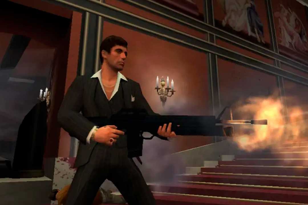 El videojuego de Radical Entertainment arrancaba desde aquella memorable escena, pero esta vez, teníamos el control de decidir el destino de Tony Montana. Esta vez, el mafioso se daba la vuelta para atacar al sicario que iba a dispararle por la espalda, cambiando completamente la línea de tiempo. Solo, sin dinero, y traicionado por todos, Montana escaparía de su antigua mansión jurando venganza contra quienes le dieron la espalda.