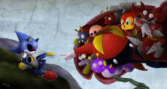 Curiosamente, tanto Amy Rose como Metal Sonic tienen su origen en un spin-off de la saga, específicamente el tercer juego que se lanzó antes de Sonic The Hedgehog 3, llamado Sonic CD. Este título, exclusivo para el accesorio Sega CD del Sega Genesis (Mega Drive), presentaba a Amy Rose como una damisela en apuros que Sonic debía rescatar. Por su parte, Metal Sonic, creado por el Dr. Robotnik, era un némesis recurrente en el juego, enfrentándose a Sonic hasta ser derrotado en una emblemática carrera.