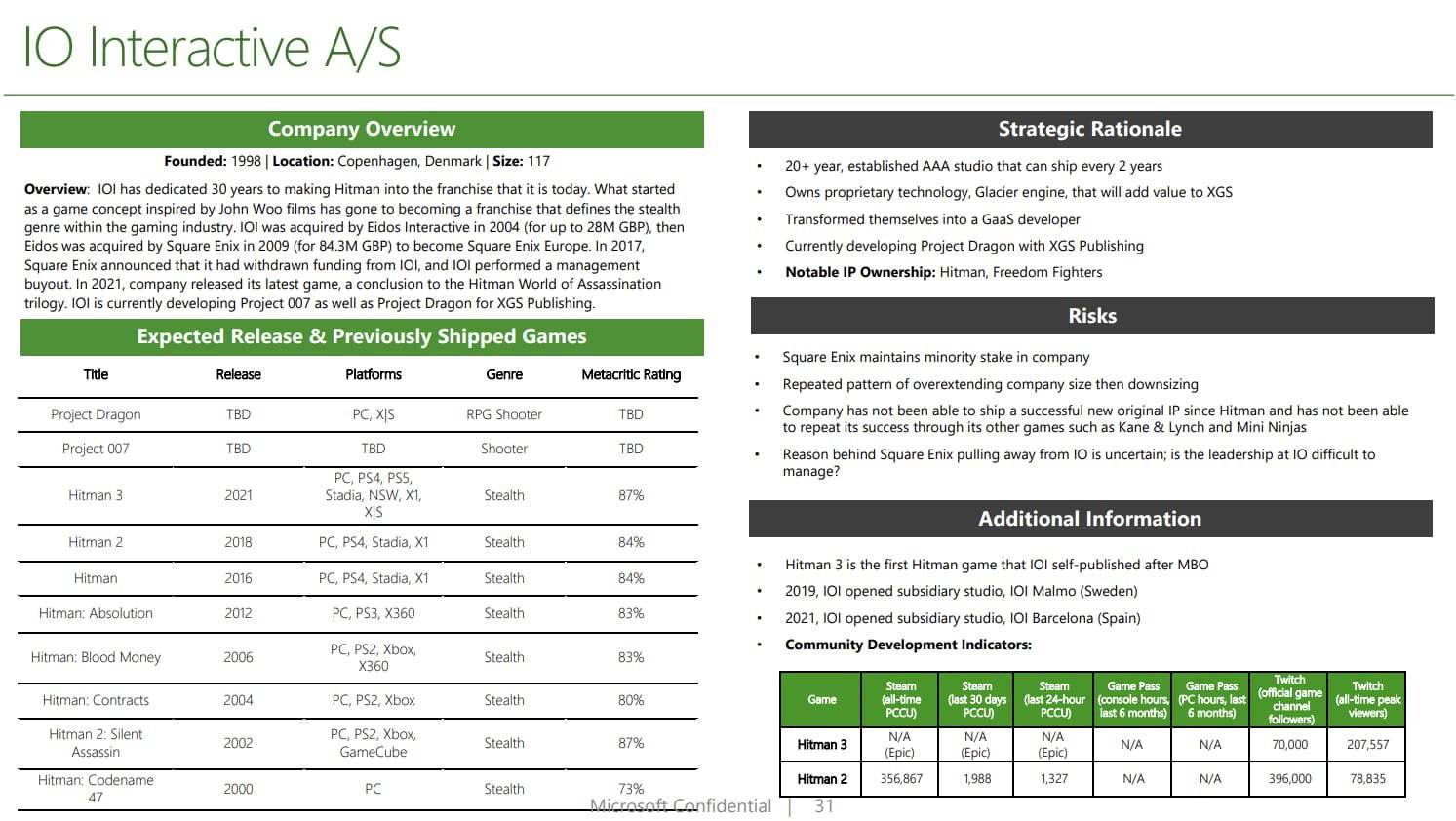 Pero las cosas no terminan ahí, y es que igualmente se filtró un documento de otros potenciales estudios que podían formar parte de Xbox Game Studios. Los dos candidatos más fuertes eran Bungie, creadores de Destiny y IO Interactive, autores de la franquicia Hitman.