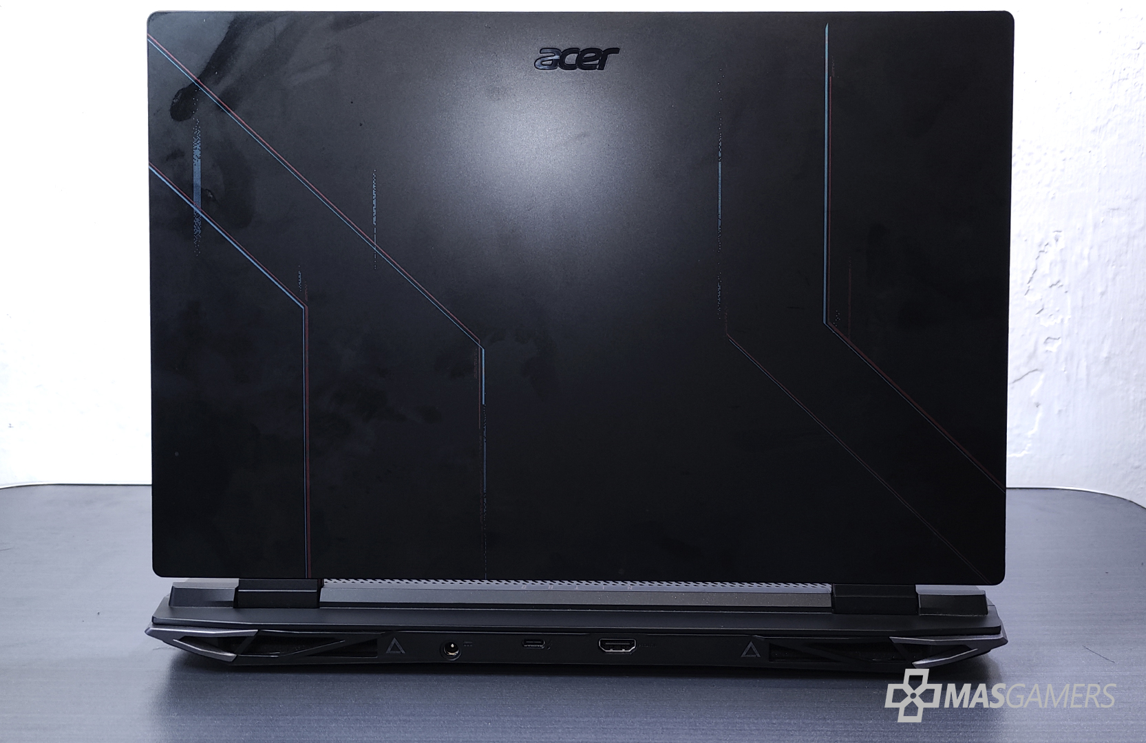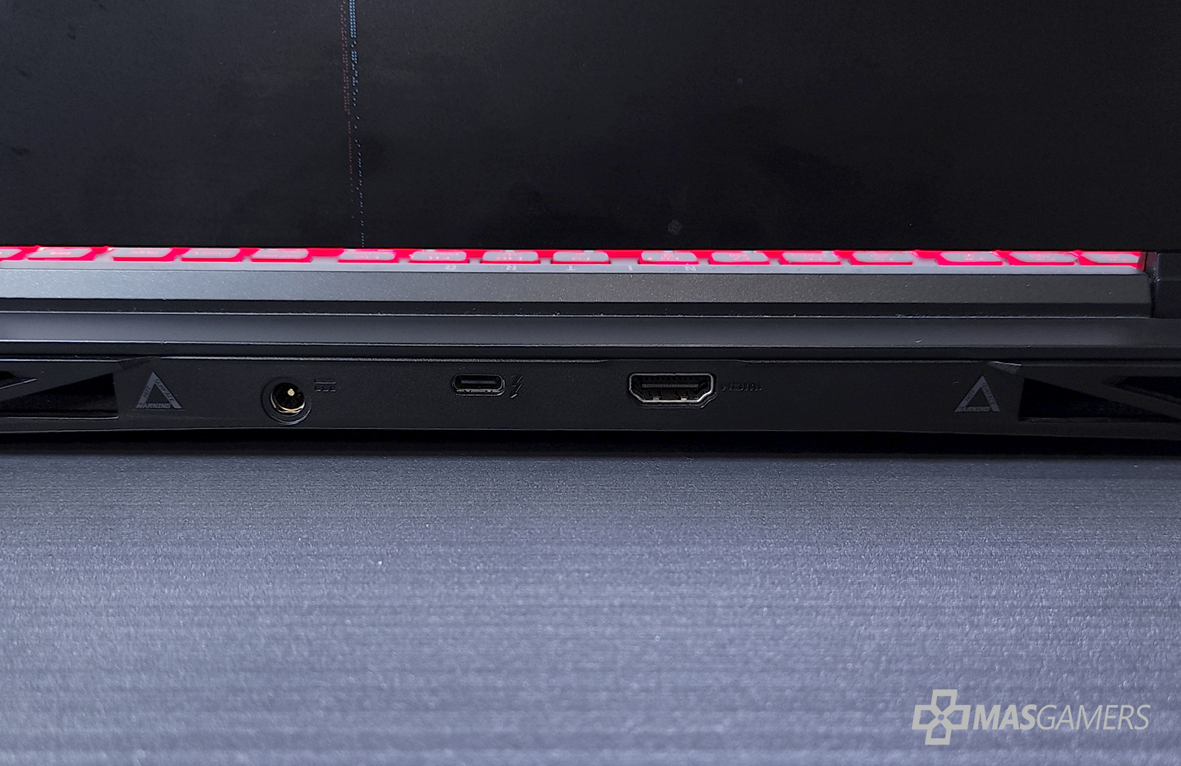 Algo que me ha gustado mucho, sobretodo para una mayor comodidad en conexiones para otras pantallas, es que tendremos la salida HDMI 2.1 en la parte posterior del equipo con esta salida podemos conectar la Nitro 5 a monitores 4K con 120Hz, así como una entrada USB C que también nos servirá para cargar otros dispositivos, así como también poderla usar para conectarla a otro monitor, y finalmente, también encontraremos la entrada de energía.