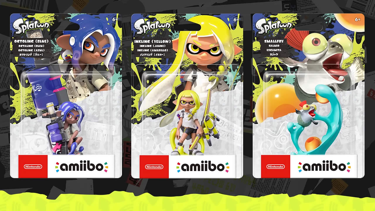 Los nuevos amiibo serán Inkling (Amarillo), Octoling (Azul) y Smallfry y vendrán en cada uno por separado. El trailer publicado en el canal oficial de Nintendo en YouTube también explica las opciones jugables de lo amiibo, incluyendo numerosos ítems de personalización.