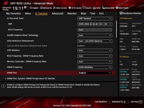 DIMM Flex ajusta dinámicamente el comportamiento del controlador de memoria en función de la temperatura actual de la memoria para optimizar el rendimiento y garantizar la estabilidad. Utiliza datos de temperatura en tiempo real procedentes de un sensor térmico integrado cerca de las ranuras de memoria para realizar ajustes de frecuencia.