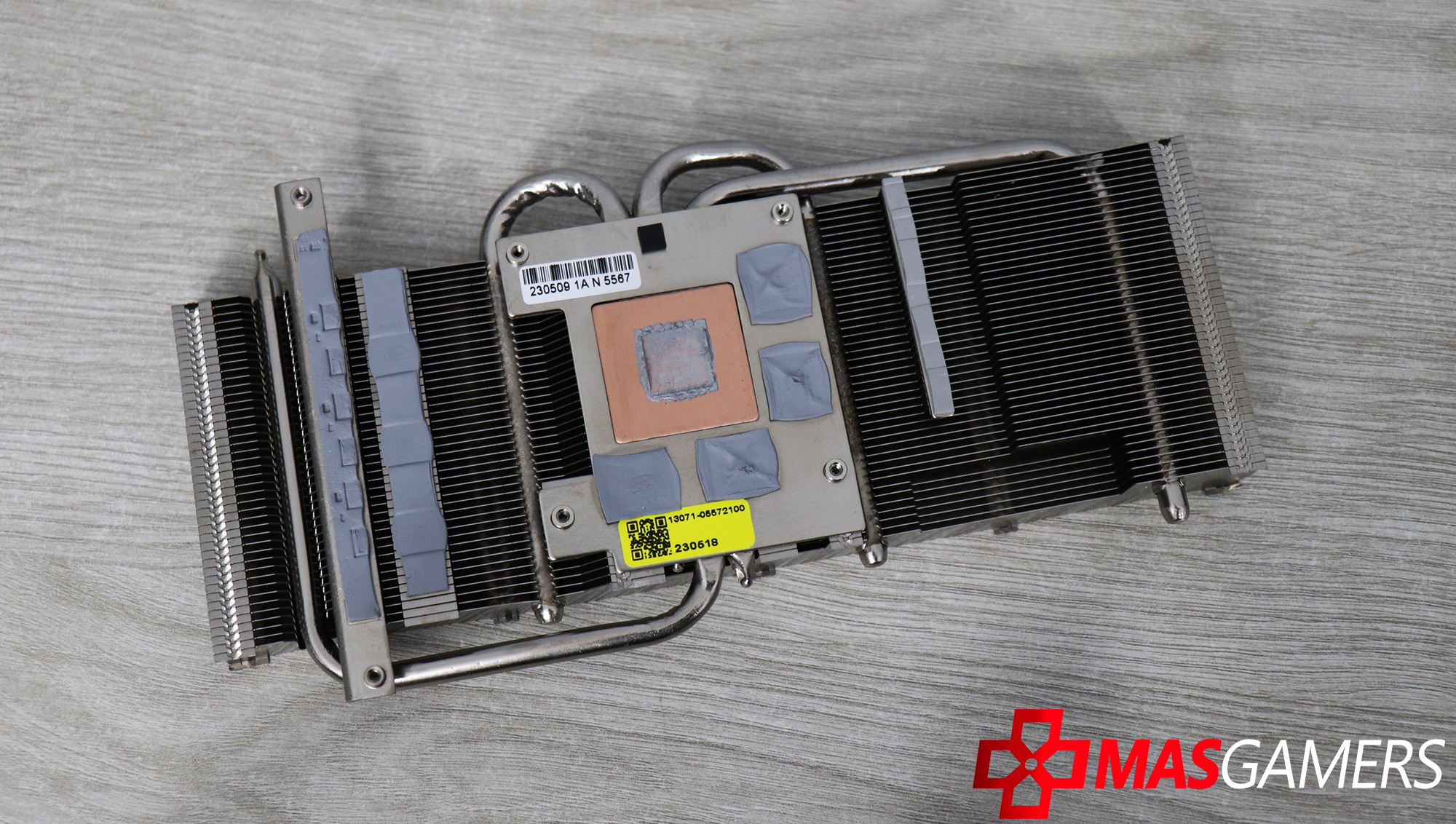 Desmontando el sistema de enfriamiento, se aprecia el gran disipador de calor de esta tarjeta y los componentes que la conforman.
