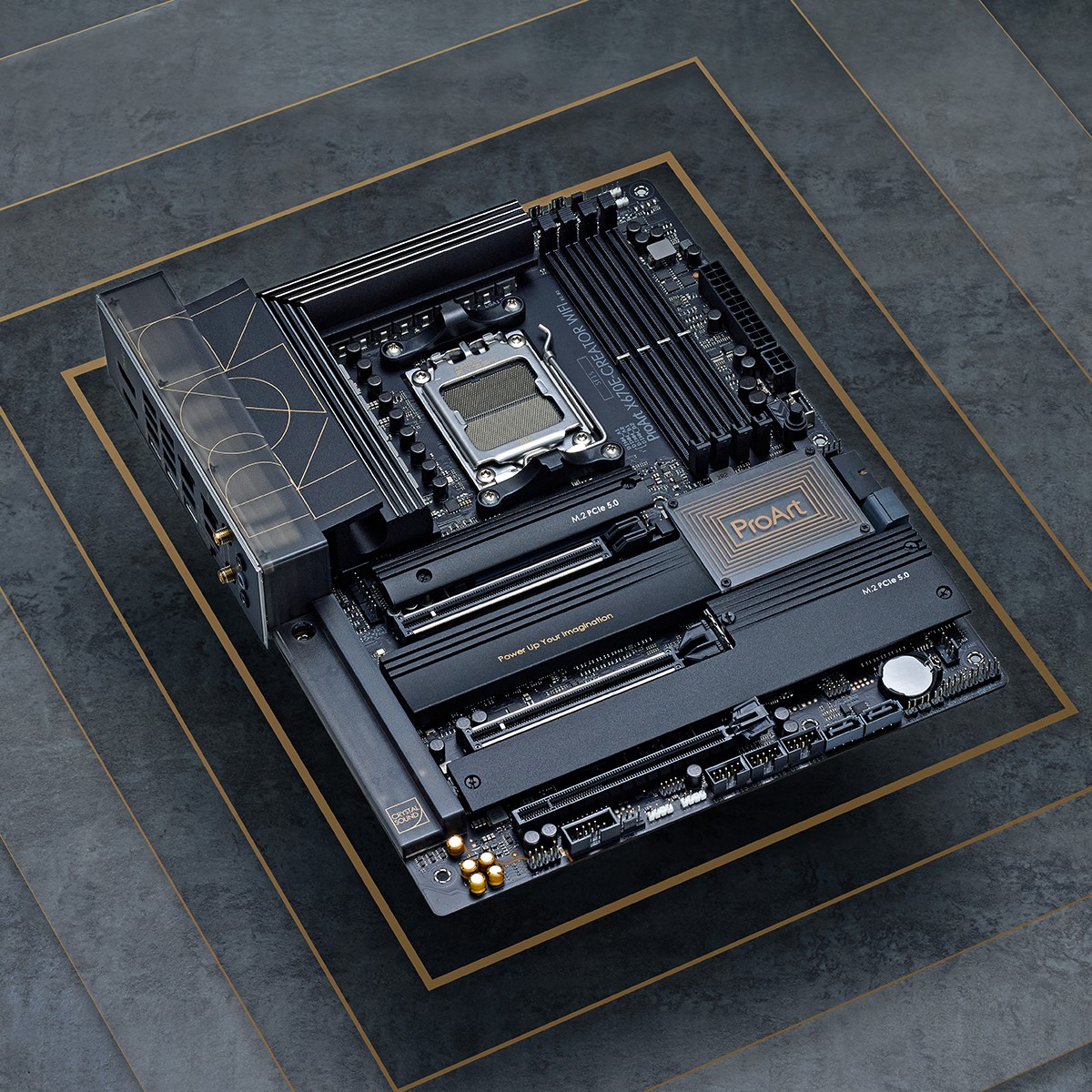 Con la conectividad PCIe® 5.0, la ProArt X670E-Creator WiFi es compatible con las unidades SSD y GPU de última generación más rápidas. Esta placa base cuenta con dos ranuras PCIe 5.0 x16. Además, está equipada con cuatro ranuras M.2 integradas, dos de las cuales están conectadas a PCIe 5.0.