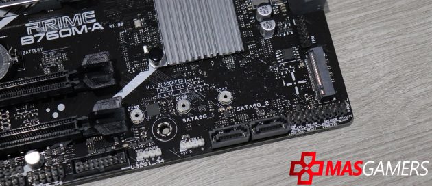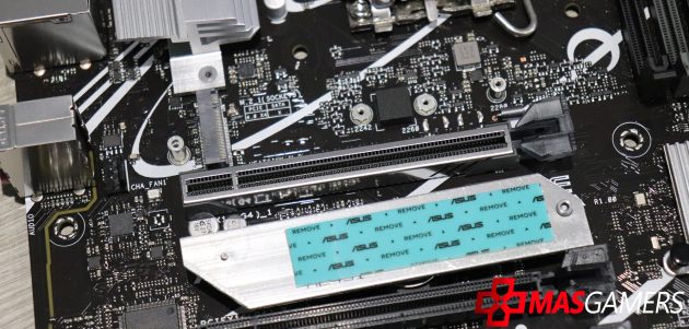 El soporte para unidades M.2 se encuentra en dos lugares de esta motherboard: el primero directamente bajo el socket del procesador y que además esta refrigerado gracias a la pieza de aluminio con una almohadilla térmica. Y el segundo en la parte inferior donde no se incluye ningún disipador.