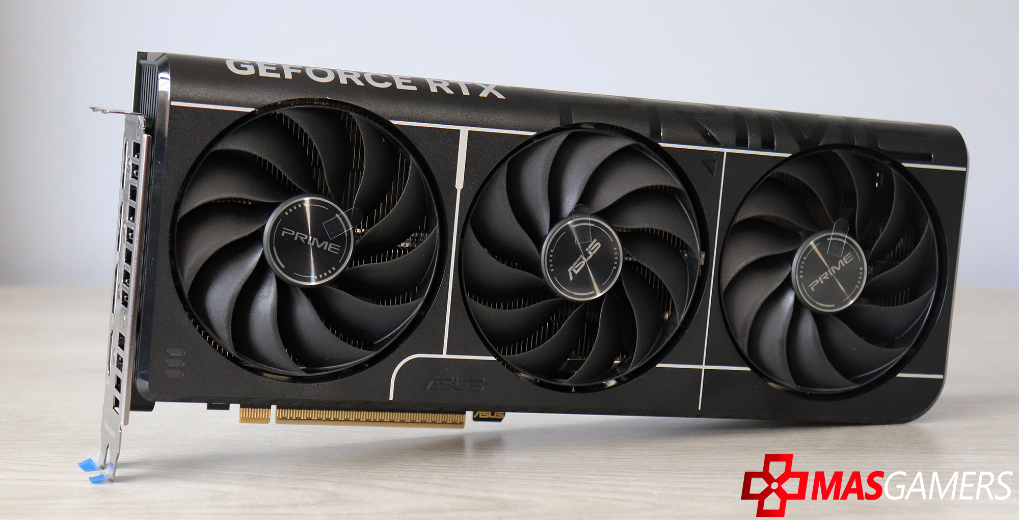 La ASUS Prime RTX 5080 presenta un diseño sobrio, elegante y bien equilibrado, manteniéndose fiel a la estética clásica y profesional que caracteriza a la línea Prime. A diferencia de las gamas ROG o TUF, aquí no hay agresividad visual ni exagerado uso de iluminación RGB. En su lugar, predomina un acabado en tonos blanco perla y gris metálico, con líneas limpias y angulos sutiles que le dan un aspecto refinado y moderno, ideal para gabinetes minimalistas o builds de estilo profesional.