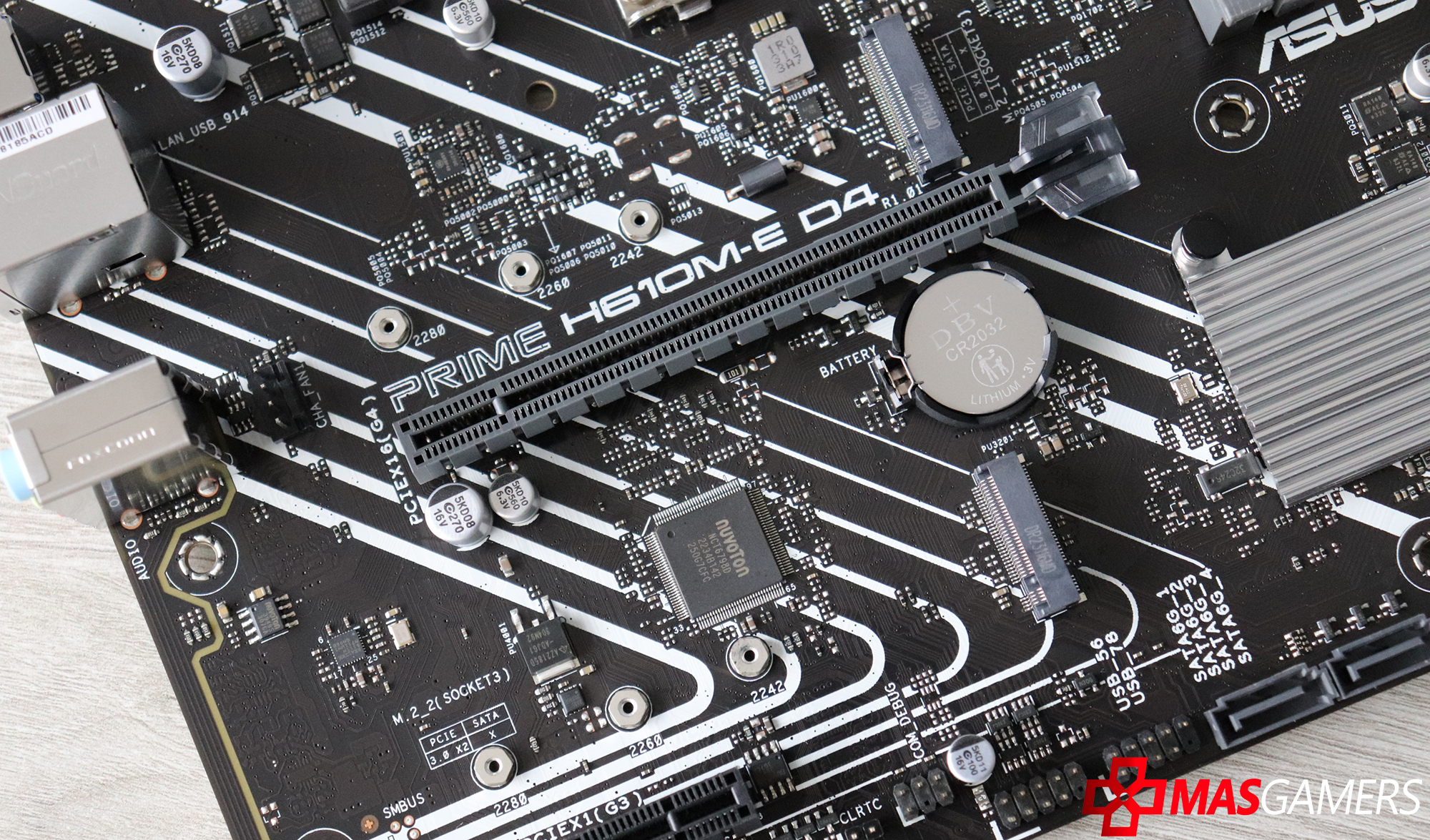 Viendo un poco más de cerca el tema de expansión nos encontramos con 2 puertos PCIe de los cuales solo el primer x16 trabaja con el protocolo PCIe 4.0 y el otro trabaja a x1 en PCIe 3.0.