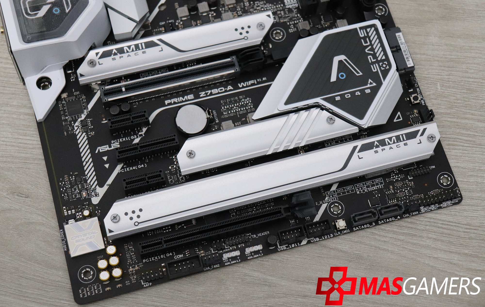 Viendo un poco más de cerca el tema de expansión nos encontramos con 2 puertos PCIe de los cuales solo el primer x16 trabaja con el protocolo PCIe 5.0 y el otro trabaja a x4 en PCIe 4.0. También encontramos un puerto PCIe x4 y 2 x1..