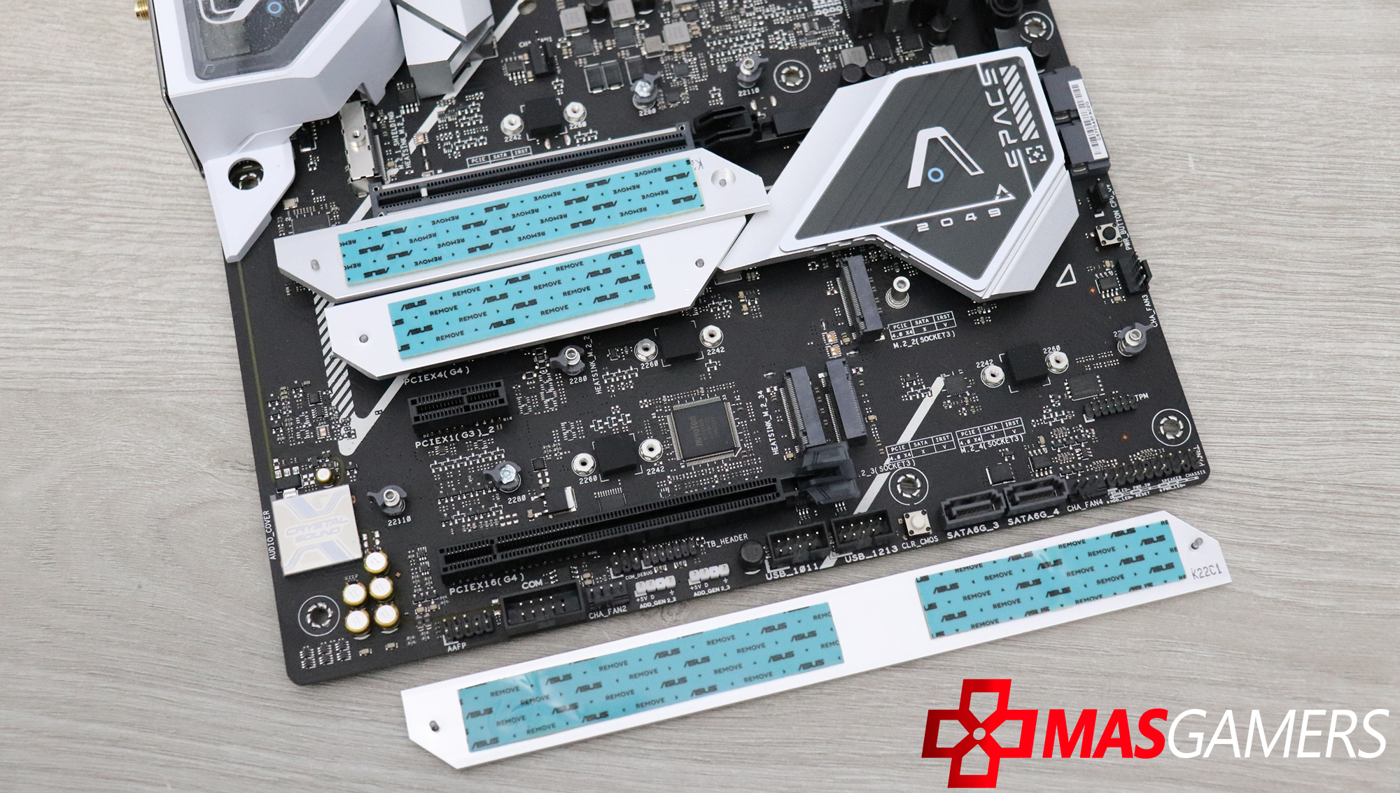 El soporte para unidades M.2 se encuentra en cuatro lugares de esta motherboard: el primero directamente bajo el socket del procesador y los 3 adicionales en la parte inferior donde también encontramos que tienen todos disipadores.