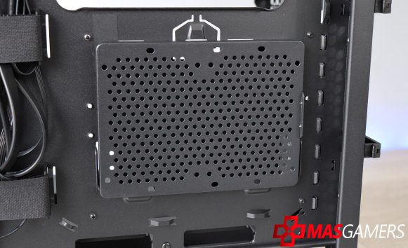 En cuanto al almacenamiento, el PA401 incluye varias opciones para montar unidades, con bahías ocultas para SSD de 2.5″ y bandejas para HDD de 3.5″, ubicadas estratégicamente para no interferir con la refrigeración ni con la estética limpia del interior. Esto lo convierte en un chasis muy versátil para creadores que requieren espacio para múltiples discos.