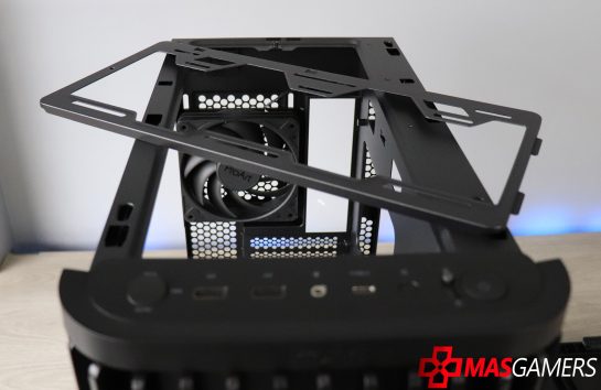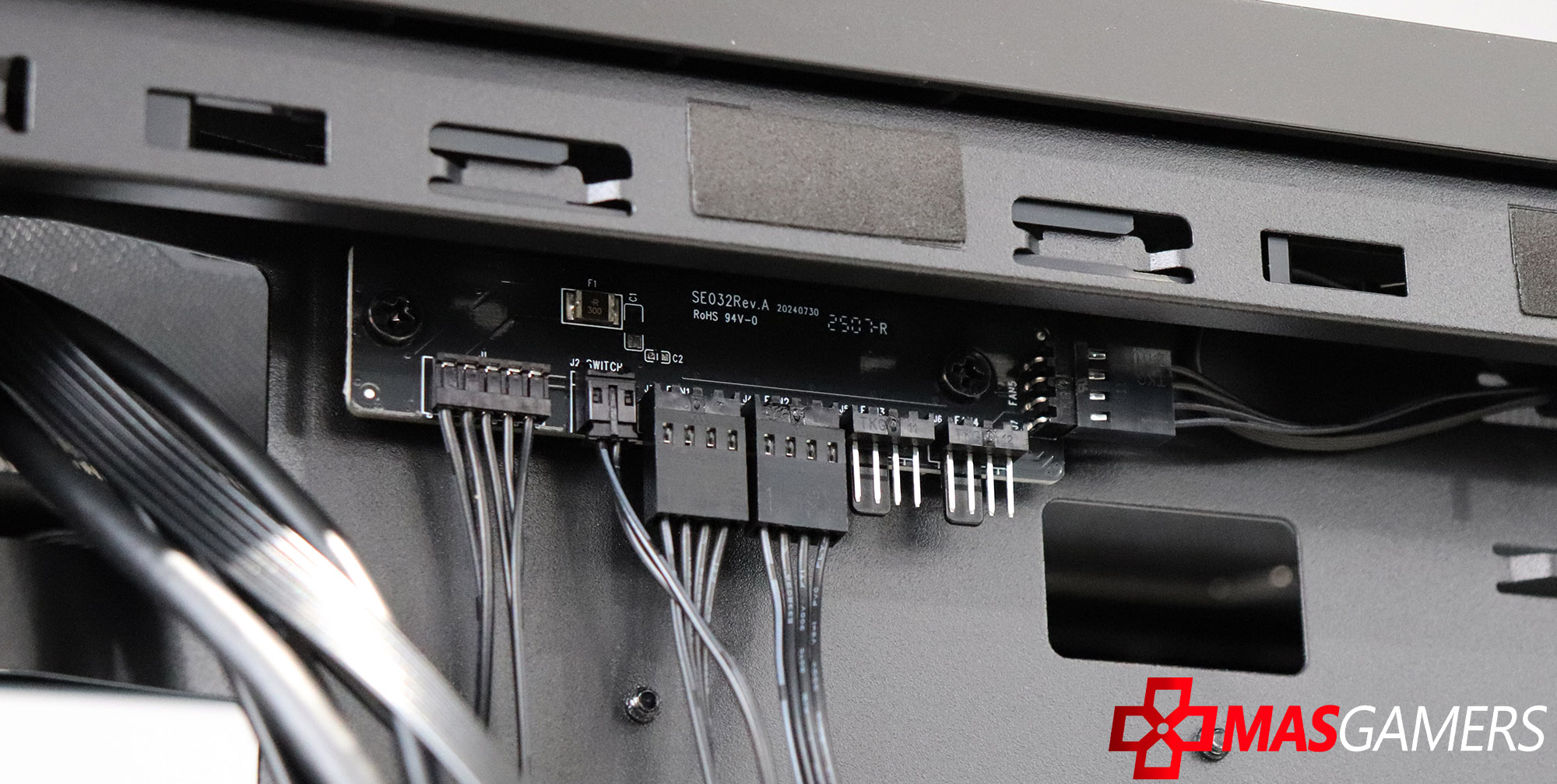 También en esta zona encontramos el HUB de los ventiladores, que no solo nos permite controlarlos sino que también agregar 2 más, para tener un total de 5 ventiladores que responden al panel ubicado en la parte superior.