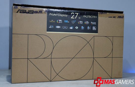 El empaque que protege nuestro monitor tiene un diseño sencillo y minimalista. Se tiene como principal atractivo el logo de «ProArt».