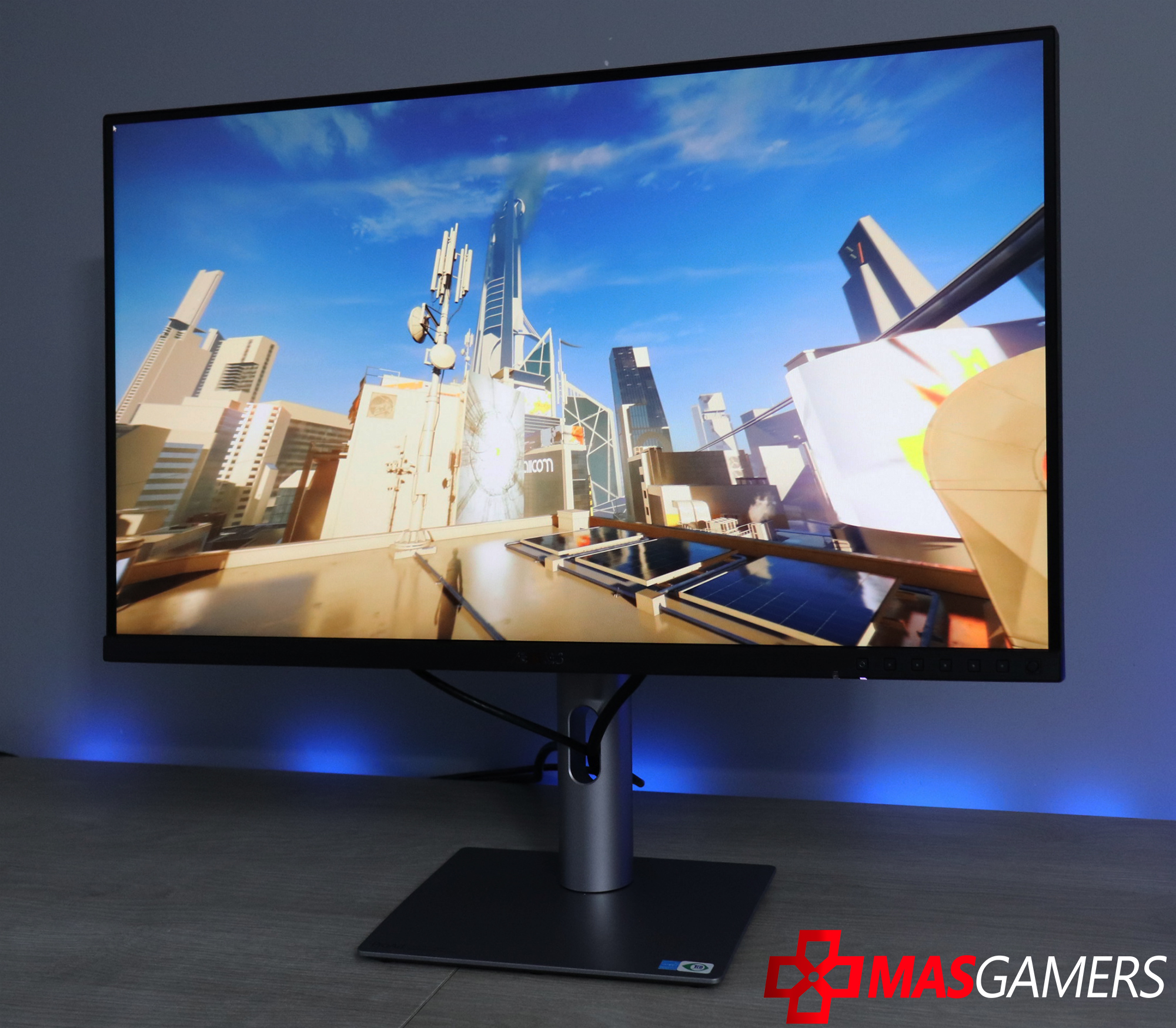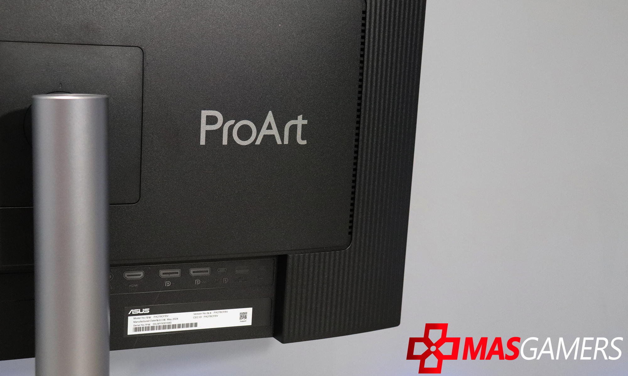 El logo “ProArt” de ASUS se encuentra discretamente en la parte posterior, en un tono plateado que combina con el diseño general.