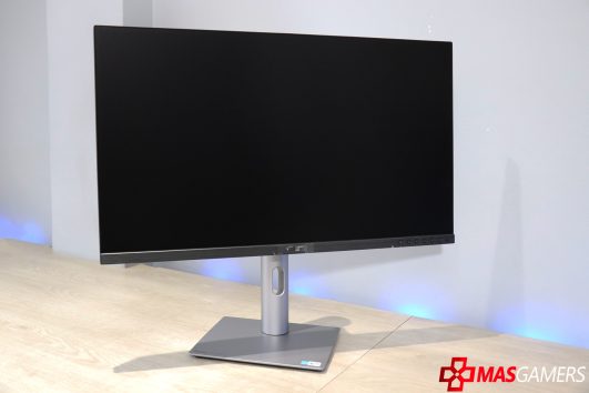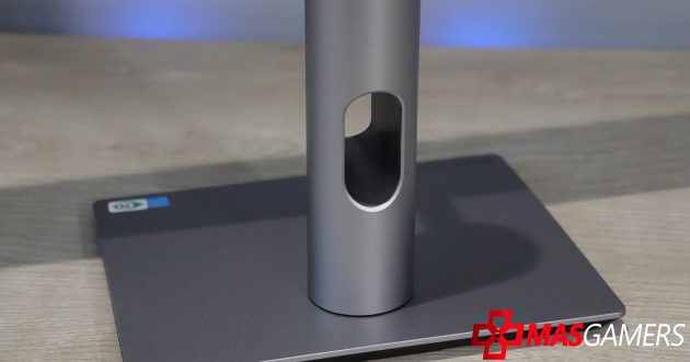 Además del diseño robusto, el monitor incluye un soporte ergonómico ajustable que permite modificar la altura, inclinación y rotación, lo que lo hace cómodo para largas sesiones de uso. Inclusive este soporte también cuenta con un agujero para el manejo de cables.
