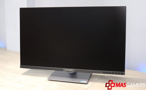 Con 27 pulgadas de diagonal y un formato de pantalla 16:9, este monitor tiene una presencia bastante amplia, ideal para espacios de trabajo que necesiten mostrar detalles o varias ventanas abiertas al mismo tiempo. El monitor utiliza un plástico resistente de alta calidad en tonos mate negro y gris oscuro, dándole un aspecto profesional y discreto.
