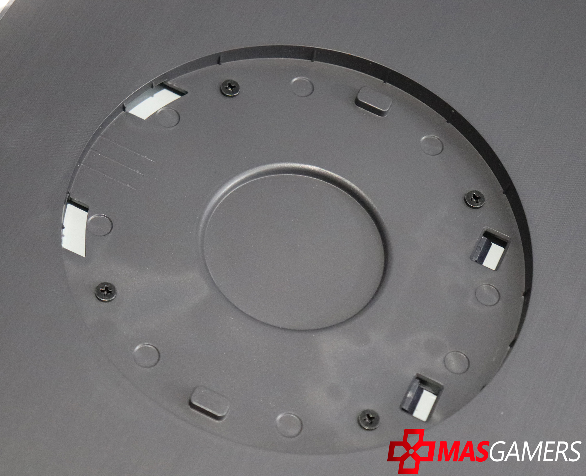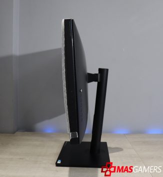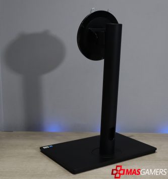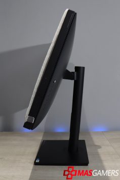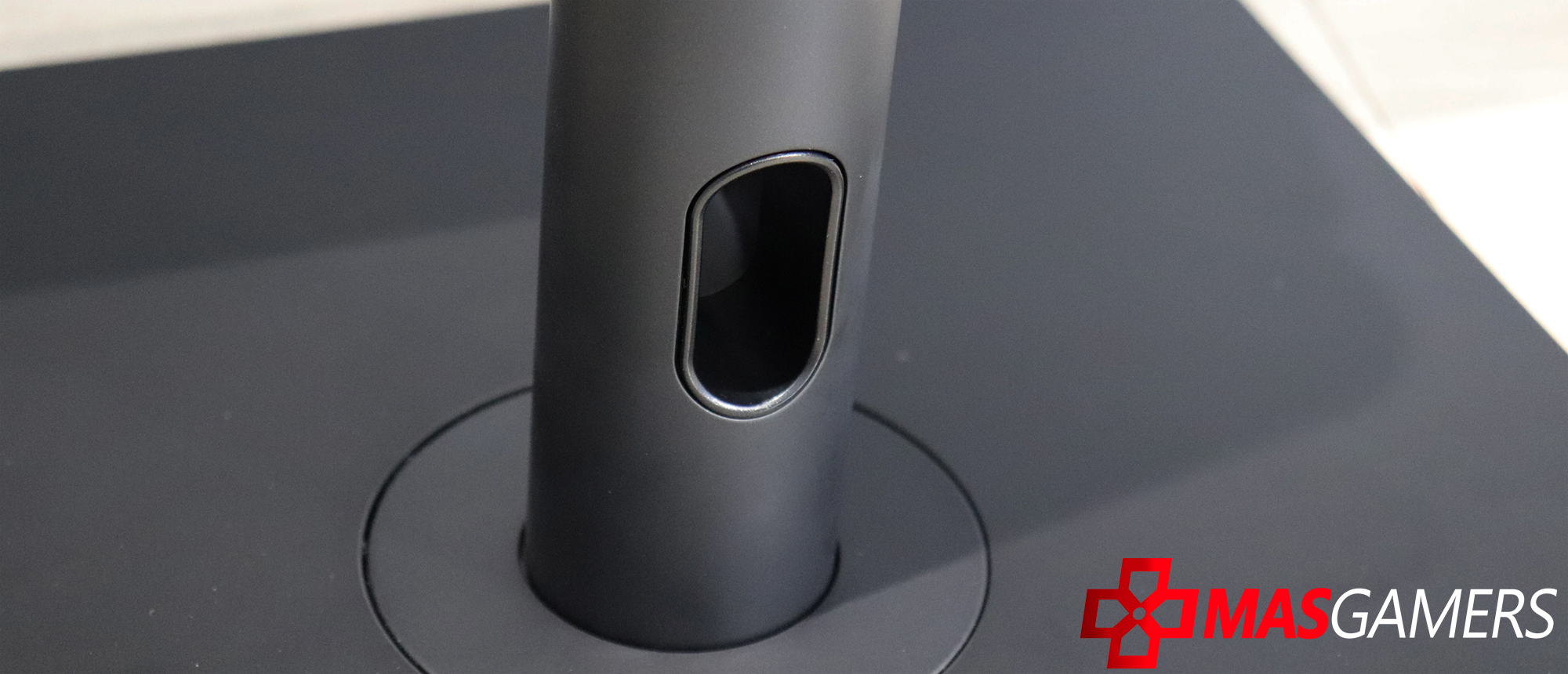 El monitor viene con una base rectangular sólida que asegura estabilidad. Su diseño plano también permite colocar objetos pequeños en ella y un práctico agujero por donde acomodar los cables.