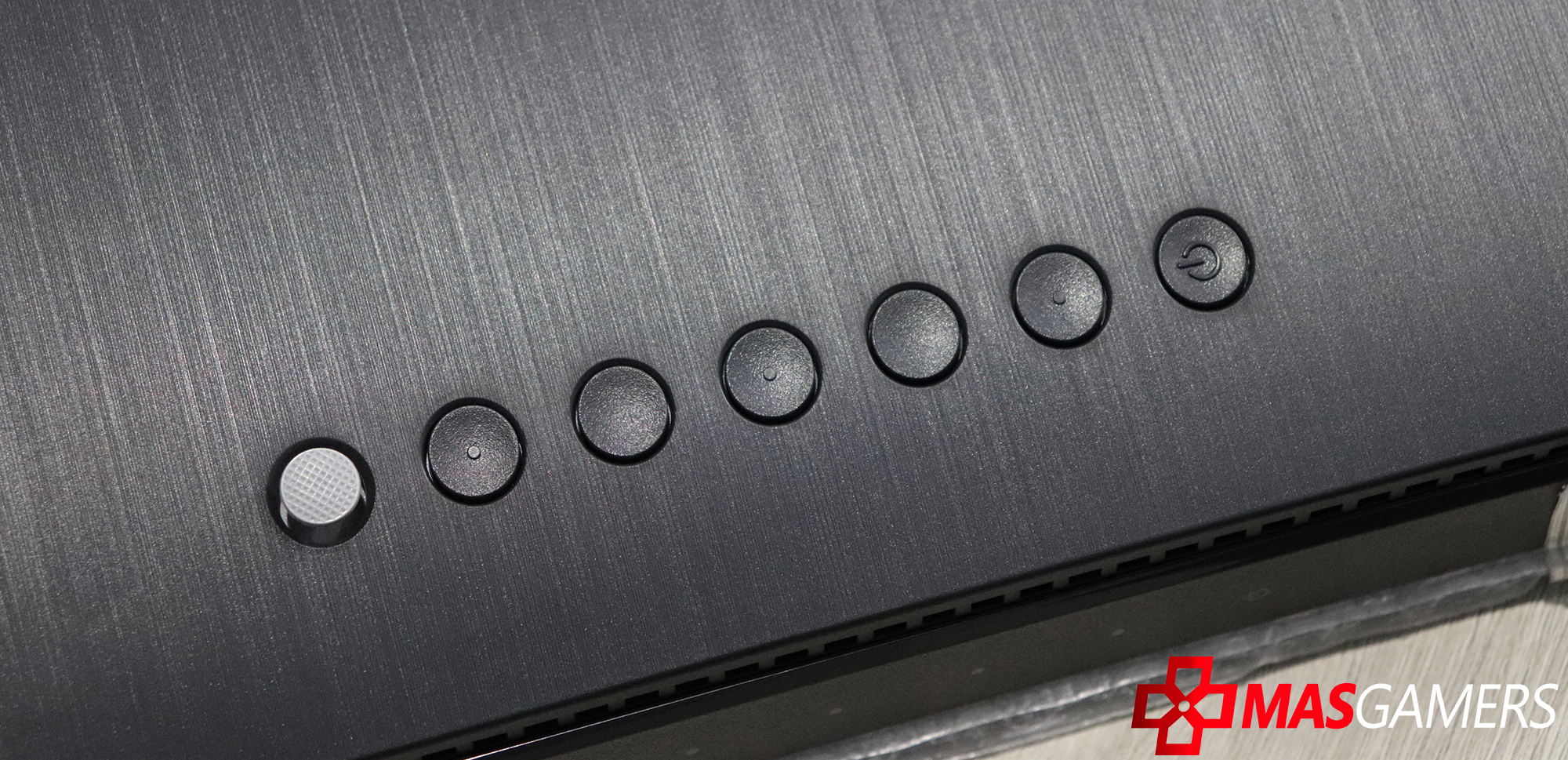 Los controles físicos están ubicados en la parte posterior derecha, y se acceden fácilmente para ajustar configuraciones de imagen, aunque si precisamos usar 2 monitores o más, quizá podría ser un problema.