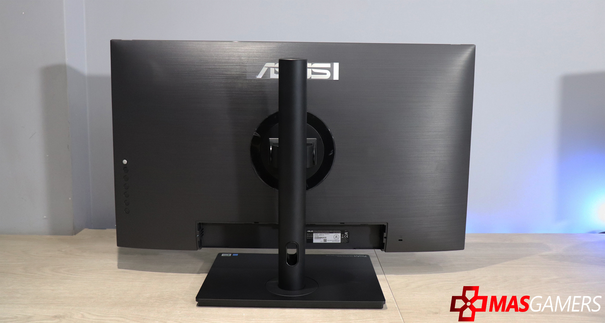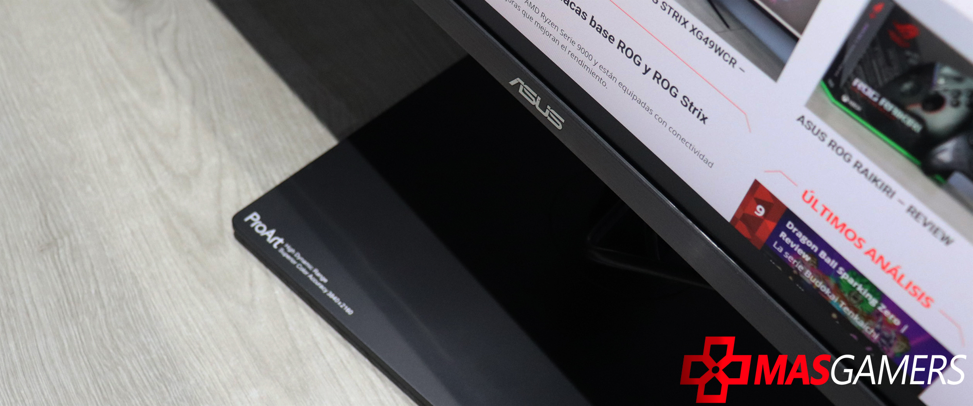 El ASUS ProArt PA32UCR combina un diseño sobrio y funcional con detalles que reflejan su enfoque en la profesionalidad y la precisión visual. Su aspecto general está dominado por líneas limpias y un acabado mate en color negro, lo que le permite integrarse fácilmente en cualquier entorno de trabajo profesional o estudio creativo.