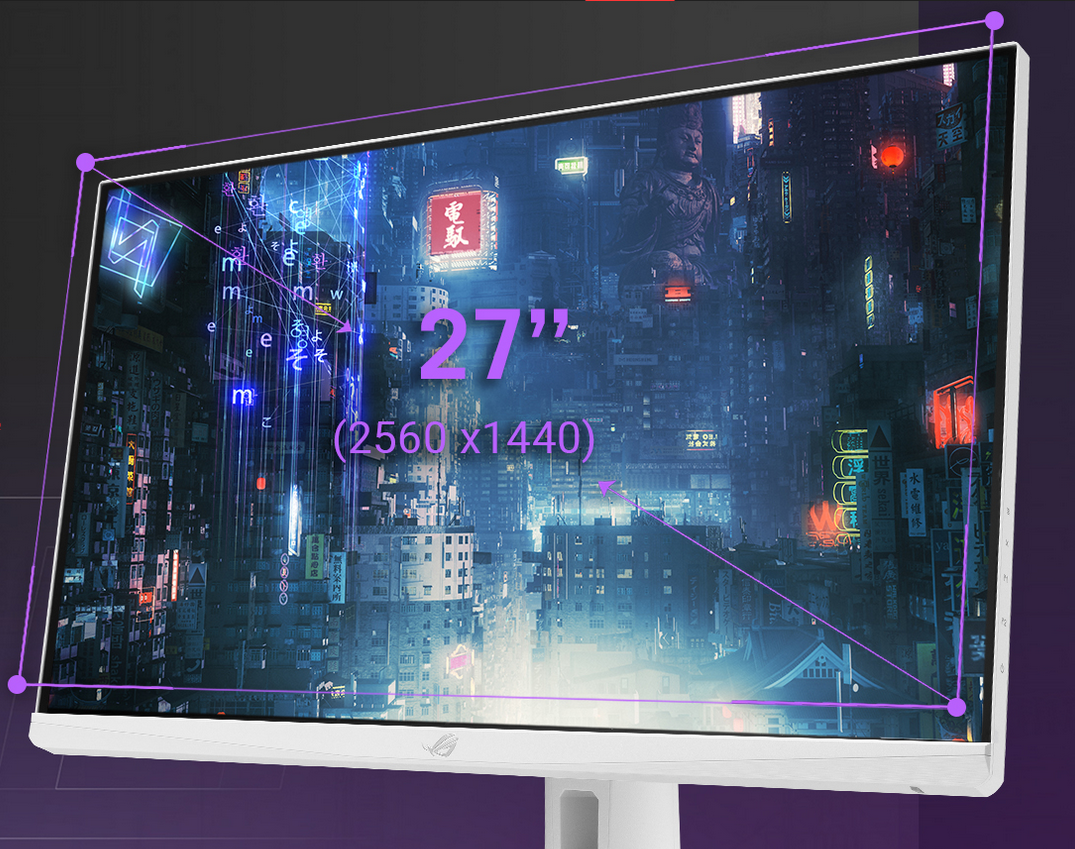 El ROG Strix XG27AQ-W es un monitor gaming overclockeable. Su pantalla de 27 pulgadas tiene un panel WQHD (2560 × 1440) que ofrece un 77 % más de espacio en pantalla que los paneles Full HD estándar (1920 × 1080). Cuenta con ASUS Fast IPS, permite que los elementos de cristal líquido cambien hasta 4 veces más rápido que los paneles IPS. Con un tiempo de respuesta gris a gris (GTG) de 1 ms, las imágenes en movimiento cobran una nitidez extraordinaria. El soporte del 95% de la gama de colores DCI-P3 junto a la relación de contraste de 1.000:1 produce un rendimiento cromático extraordinario, y los ángulos de visión de 178 grados reducen al mínimo la distorsión de color cuando se ve la pantalla desde posiciones extremas.