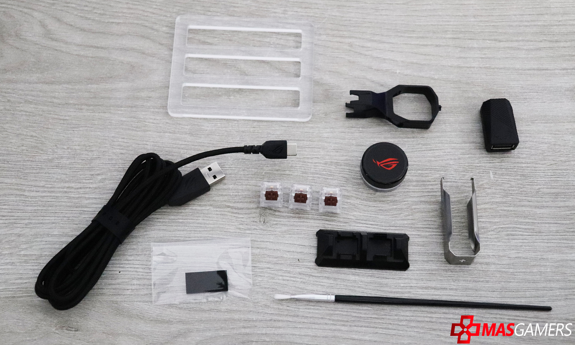 Una de las mayores fortalezas del ROG Azoth es su enfoque en la personalización. Los switches mecánicos intercambiables en caliente lo hacen atractivo para los entusiastas del hardware, permitiendo modificar y ajustar la sensación de cada tecla sin esfuerzo. Esta flexibilidad es rara en teclados comerciales, lo que convierte al Azoth en una opción ideal para quienes buscan adaptar completamente su experiencia de escritura o gaming. Además, el teclado incluye herramientas de mantenimiento y lubricante para switches, lo que demuestra que ASUS ha pensado en los detalles que realmente importan a los usuarios más exigentes.