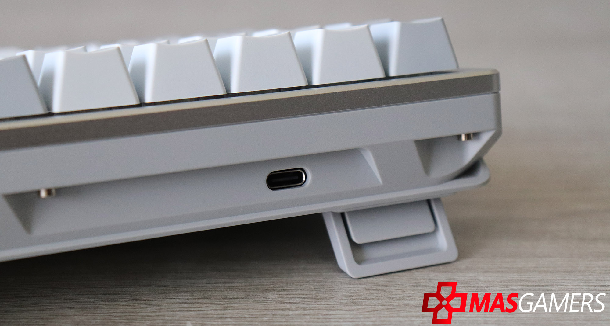 Su construcción transmite una sensación sólida y premium desde el primer contacto. La placa superior metálica en acabado Moonlight White aporta rigidez estructural y una apariencia elegante, mientras que la base inferior de plástico reforzado asegura durabilidad sin incrementar excesivamente el peso. El conjunto se siente firme sobre el escritorio, evitando desplazamientos incluso durante sesiones intensas de juego.