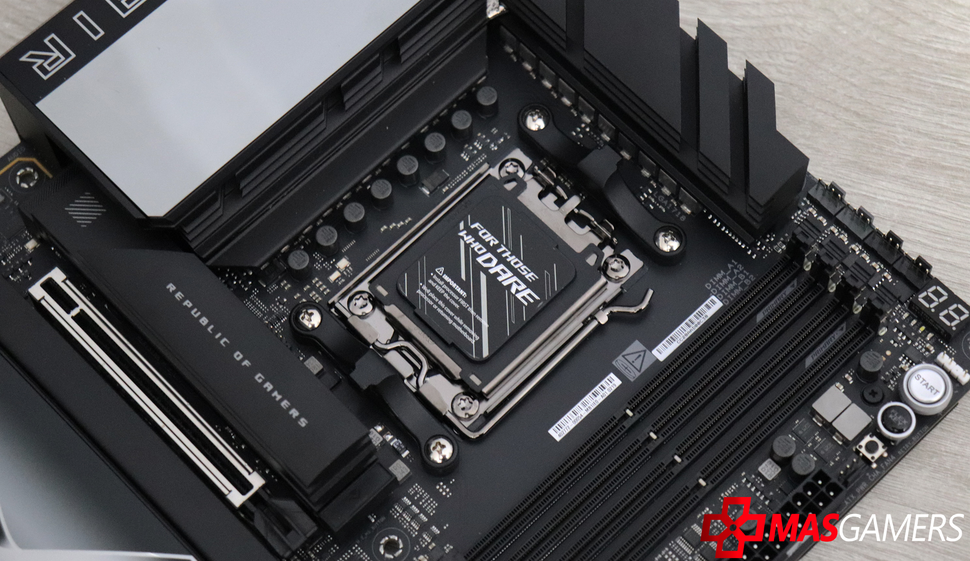 Como bien sabemos, este modelo cuenta con un socket AM5 que da soporte a los nuevos procesadores Ryzen, es decir la serie 9000 de AMD. Lo cual también significa que lo podemos usar procesadores de generaciones anteriores como 7000 u 8000.