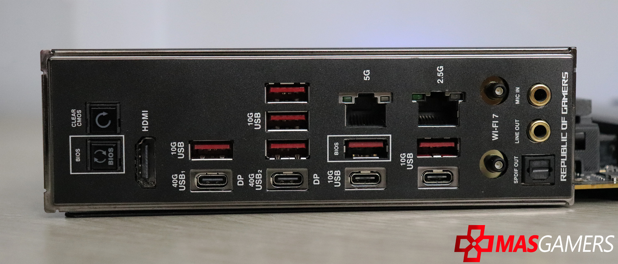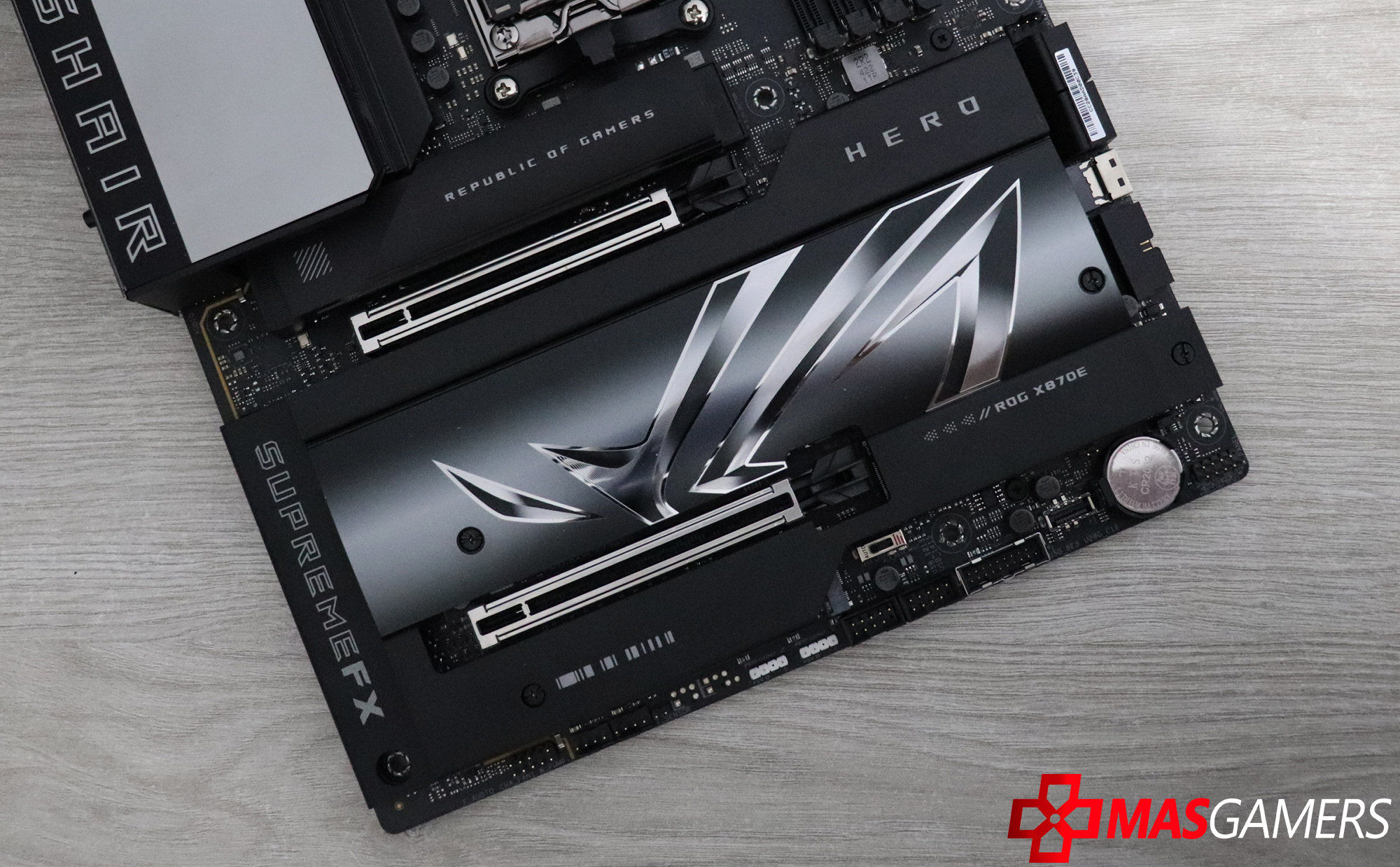 Las ranuras PCIe 5.0 están diseñadas para manejar tarjetas gráficas de última generación, mientras que las cuatro ranuras M.2, tres de ellas con soporte para PCIe 5.0, incluyen blindaje térmico para mantener el desempeño de los SSD.