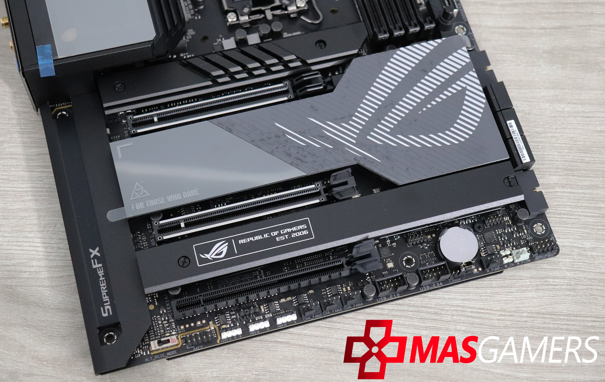 Viendo un poco más de cerca el tema de expansión nos encontramos con 3 puertos PCIe de los cuales los dos primeros x16 trabajan con el protocolo PCIe 5.0, el último esta enlazado al Chipset y funciona a 4.0