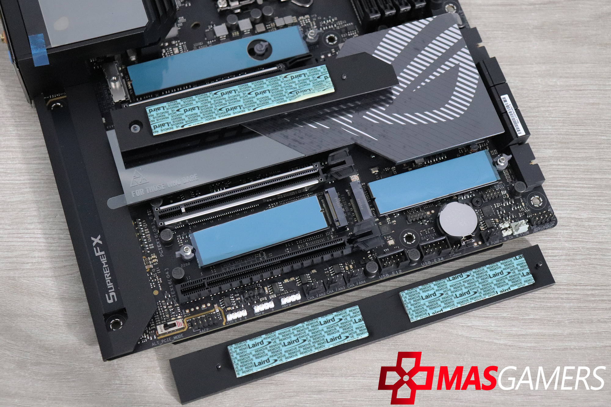 Y al abrirlo encontramos los puertos M.2 y las almohadillas térmicas para garantizar excelentes temperaturas de funcionamiento.