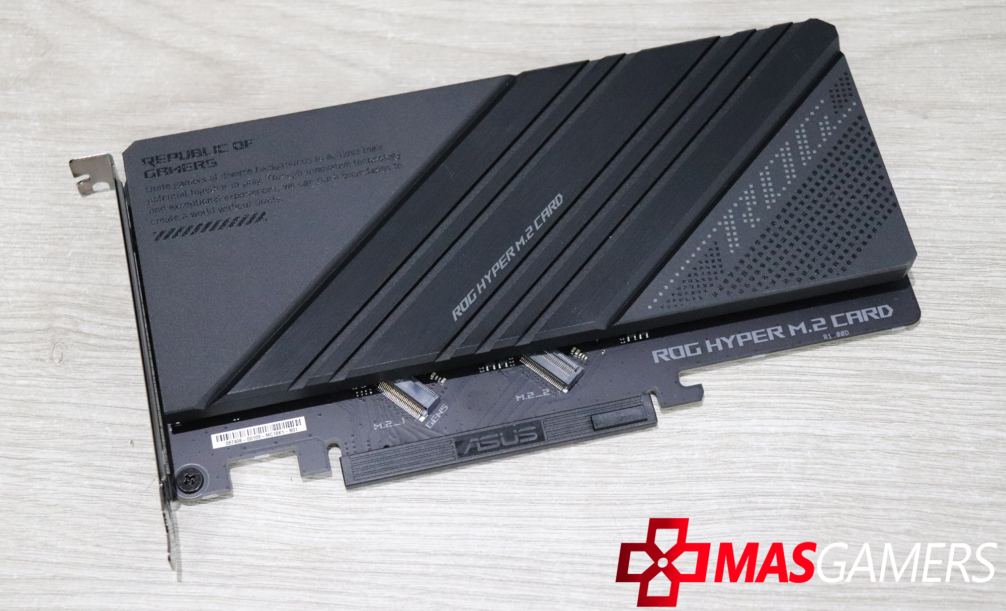 Pero el accesorio más llamativo es la ROG Hyper M.2 Card, una tarjeta de expansión PCIe que nos permite añadir 2 slots M.2 PCIe 5.0 al sistema.