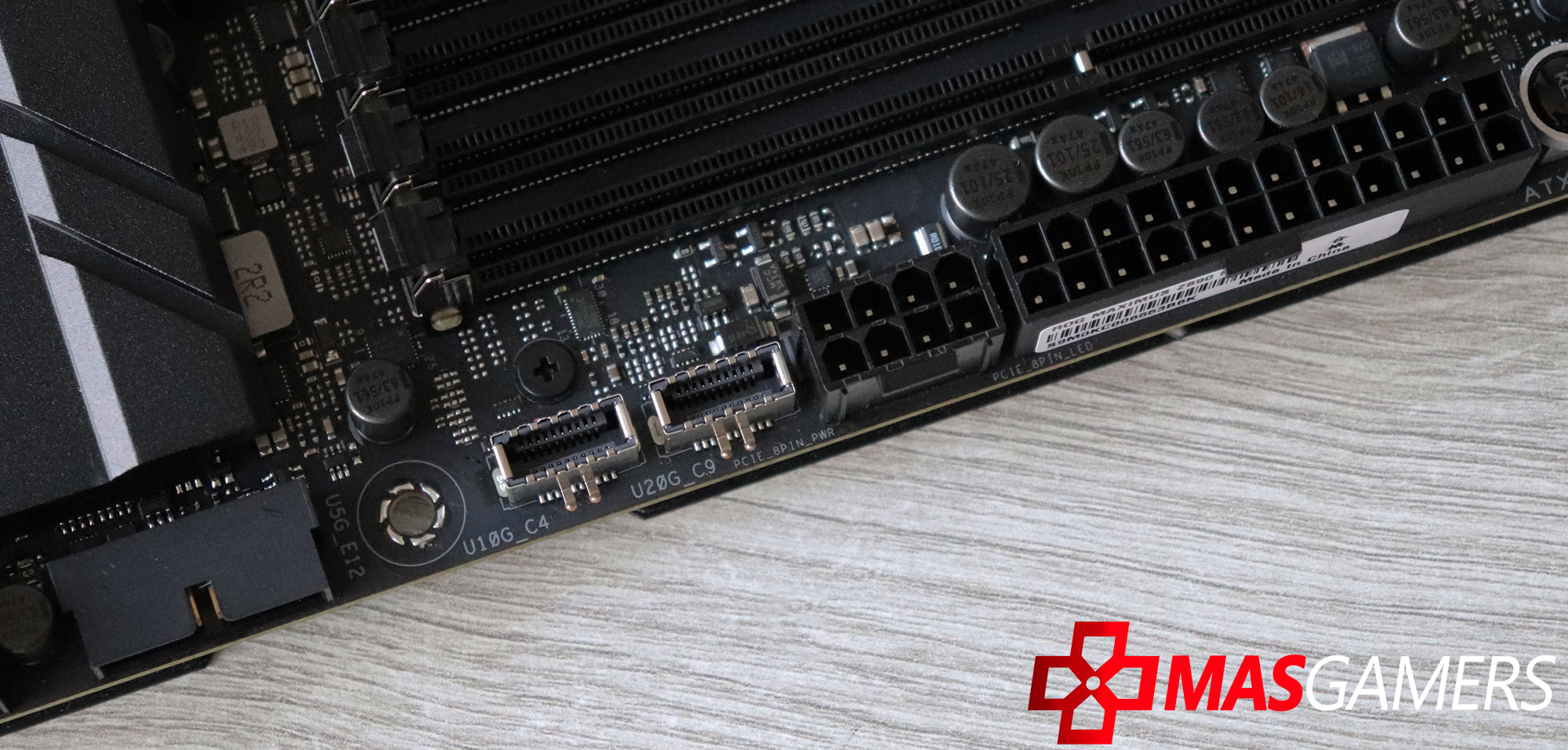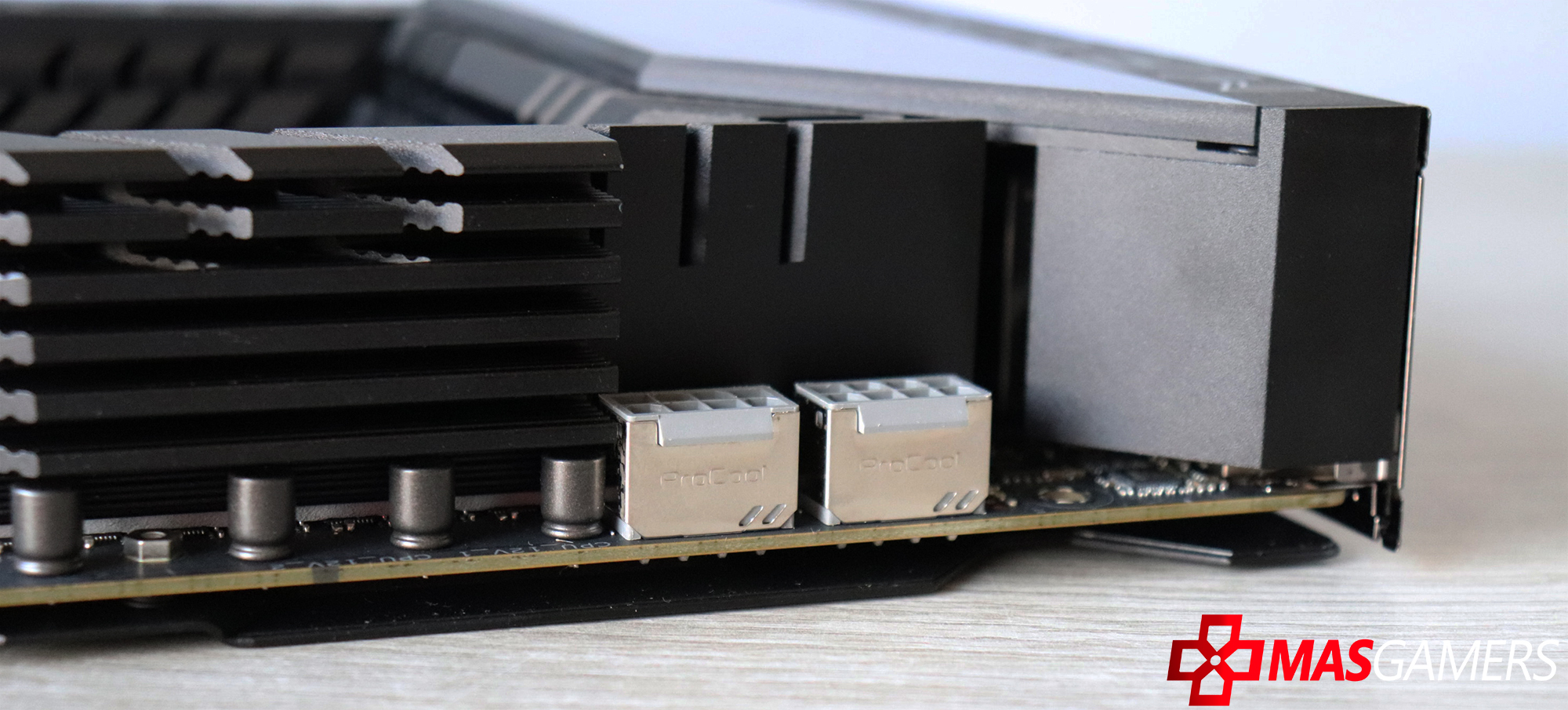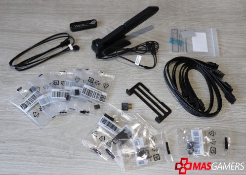Algo que ya poco a poco se va haciendo más normal encontrar 2 conectores para USB tipo C internos para nuestros cases, y en este caso incluso nos solicita un conector PCIe x8 de energía para poder usar la carga rápida de 70W.