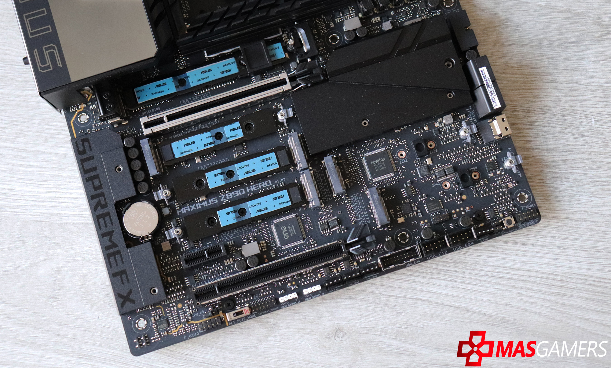 Lo que si llama la atención es la nueva moda de colocar disipadores fácil acceso. En este caso este esta ubicado directamente bajo el procesador.