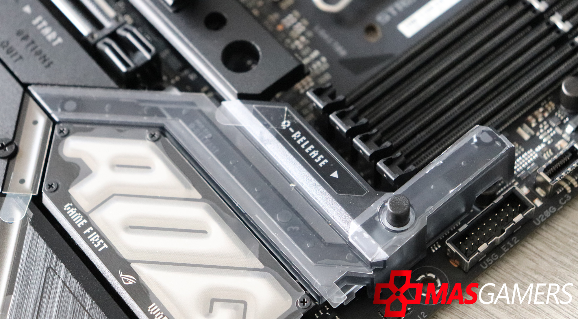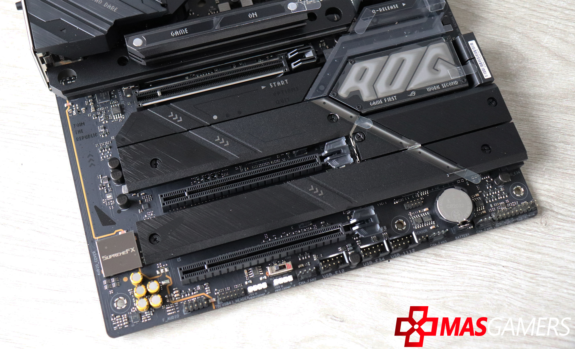 Y ya que hablamos de los puertos PCI, es interesante mencionar que el fabricante incluyó un botón bajo el nombre de Q-Release el cual nos permite liberar el seguro para hacer más fácil la extracción de nuestra tarjeta de vídeo.