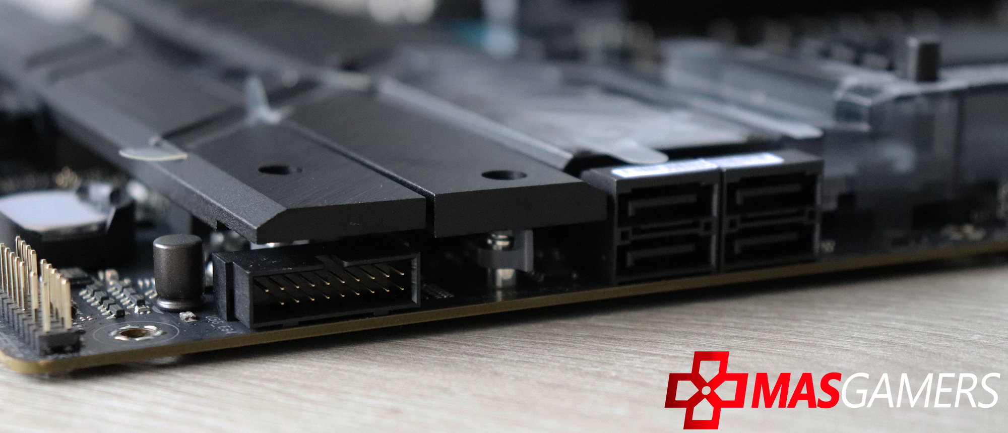 El soporte para unidades M.2 se encuentra en 5 lugares de esta motherboard: el primero directamente bajo el socket del procesador y que además esta refrigerado gracias a la pieza de aluminio con una almohadilla térmica. Y los 4 adicionales en la parte inferior donde todos están refrigerados.