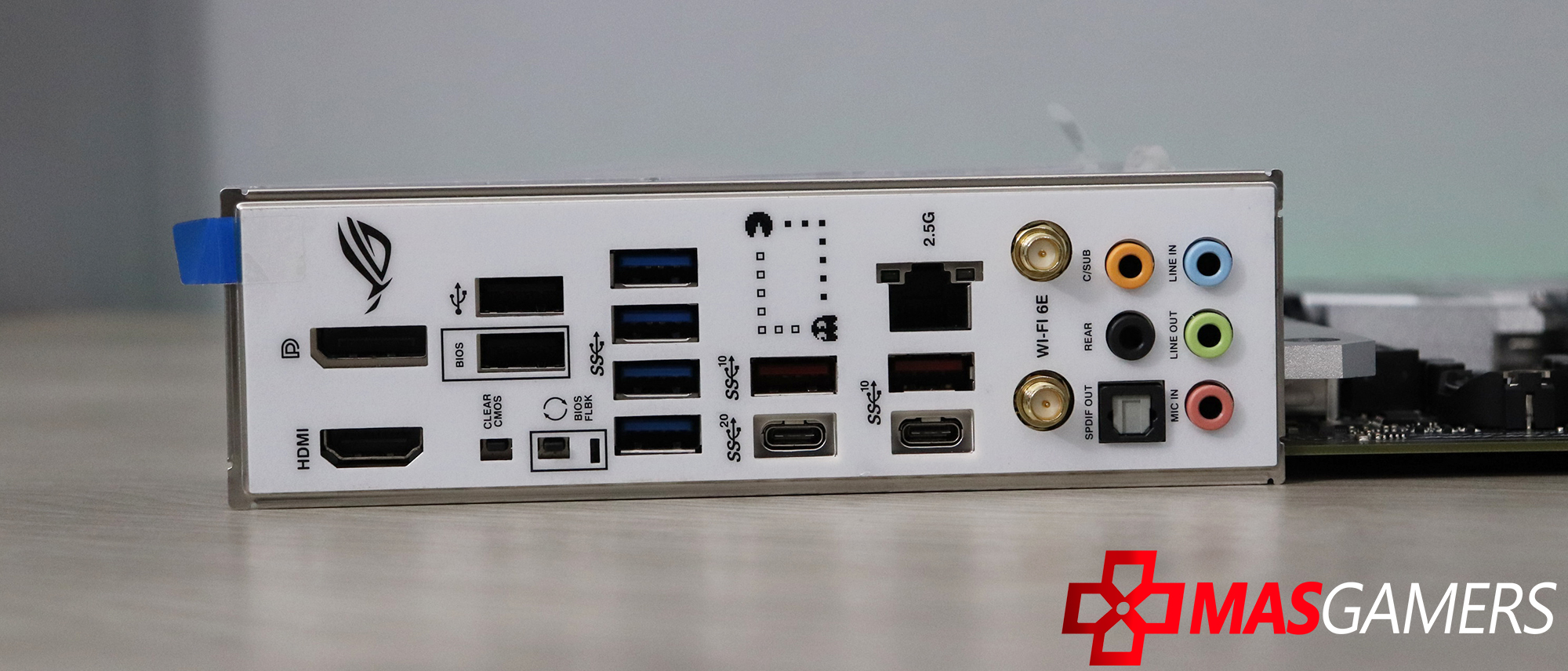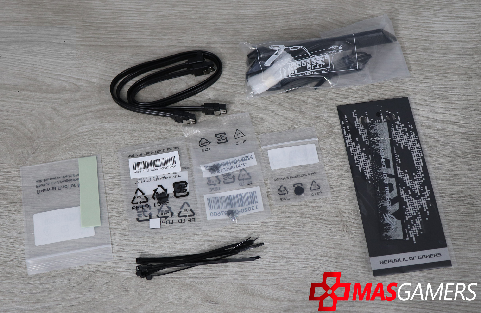 Los colores negro, gris y acentos en blanco son lo que primero capta nuestra atención en esta placa base. Su diseño en general es muy parecido a lo visto en la generación anterior, aunque con detalles que le dan un aspecto más fresco y moderno. Y es en estos detalles donde vemos pequeños dibujos ROG haciendo referencia a video juegos.
