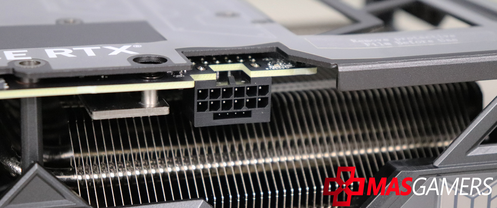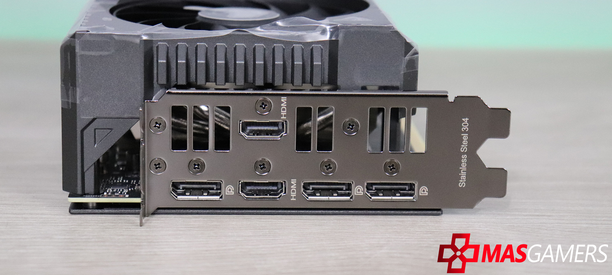 En cuanto a conectividad encontramos lo clásico: 3 puertos Display Port 1.4 y 2 puertos HDMI 2.1. Y como decíamos, si bien solo tiene 2 slots, es necesario dejar al menos 4 para que entre de todo.