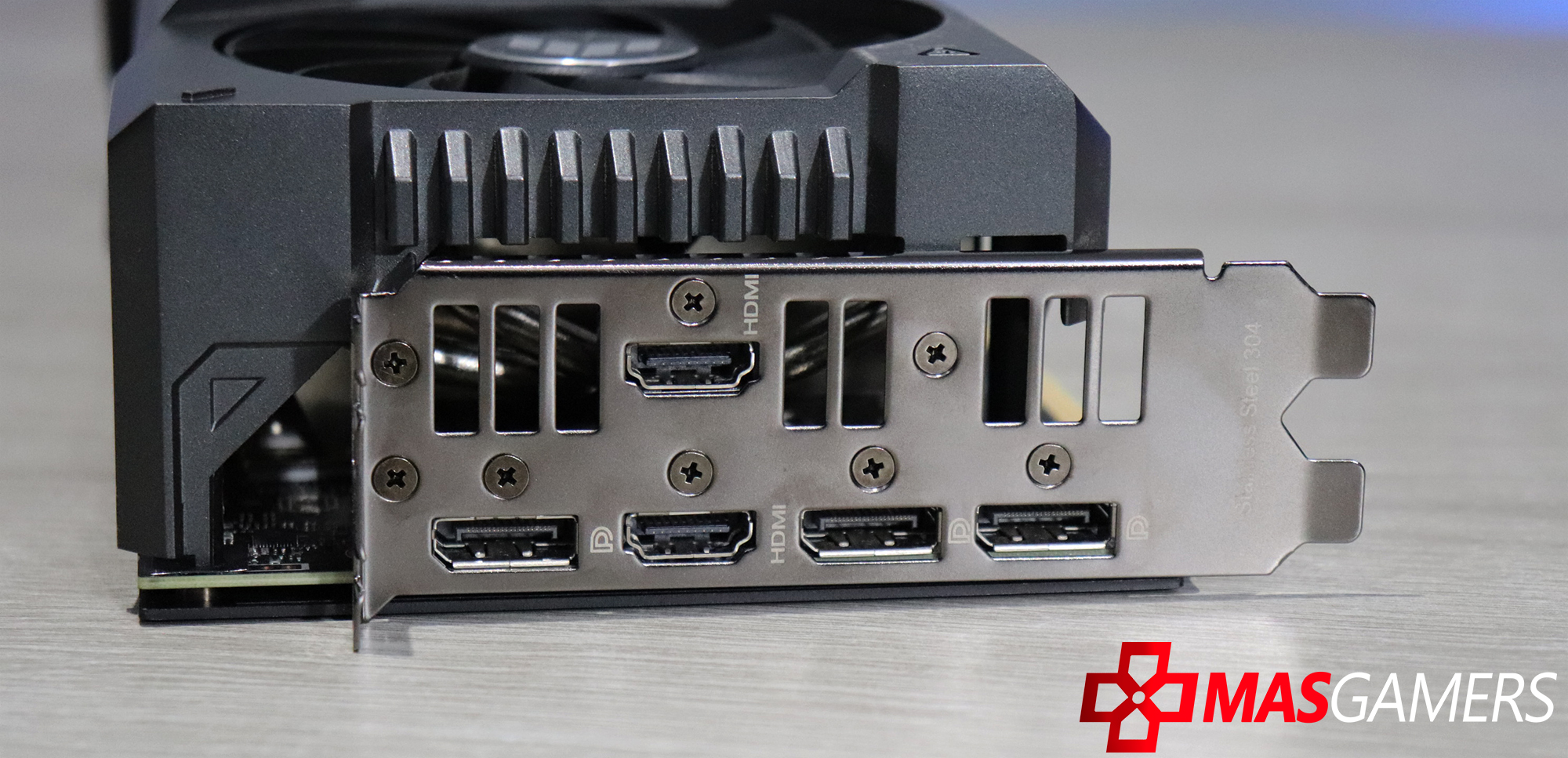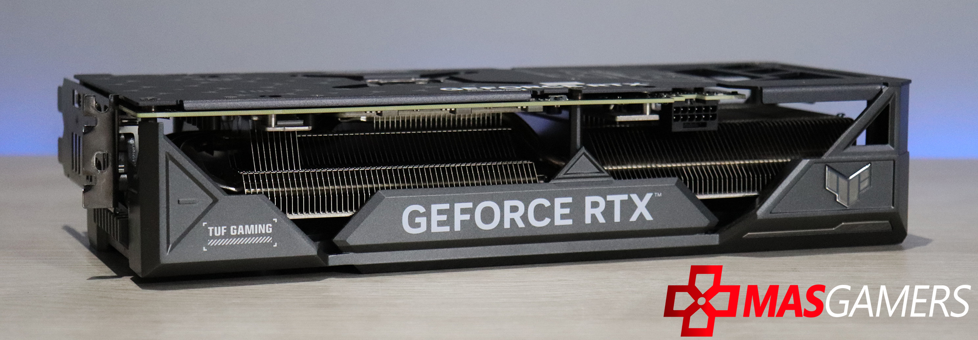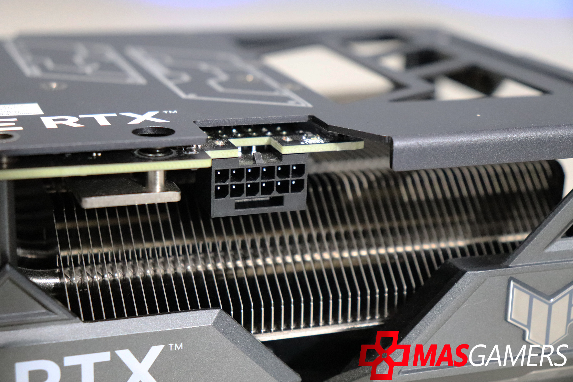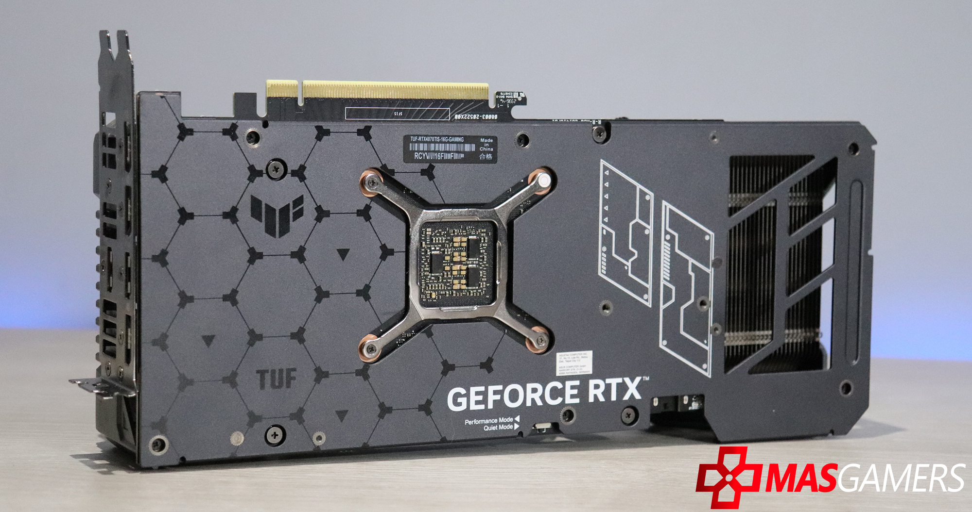 En la parte posterior vemos también parte del re-diseño. Con backplate más grande, perforado y detalles TUF en blanco que combina muy bien con cualquier sistema. Además, su apariencia industrial y elegante se integra perfectamente en cualquier configuración de PC de alta gama.