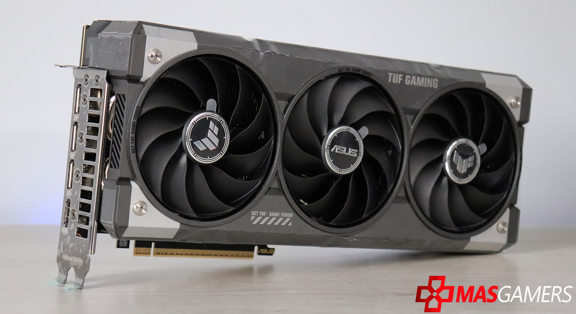 La ASUS TUF Gaming RTX 5060 Ti 16GB presenta un diseño robusto y sobrio, fiel al estilo de la serie TUF. El cuerpo de la tarjeta está construido con una carcasa metálica en color gris oscuro con acabados mate, lo que le da una apariencia sólida y profesional. En el frontal destacan sus tres ventiladores Axial-tech de gran tamaño, diseñados para maximizar el flujo de aire y mantener temperaturas estables incluso bajo carga intensa.