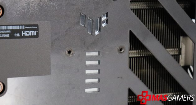 Este backplate incluye cortes estratégicos para optimizar el flujo de aire y el clásico sello TUF grabado que en este caso si cuenta con iluminación.