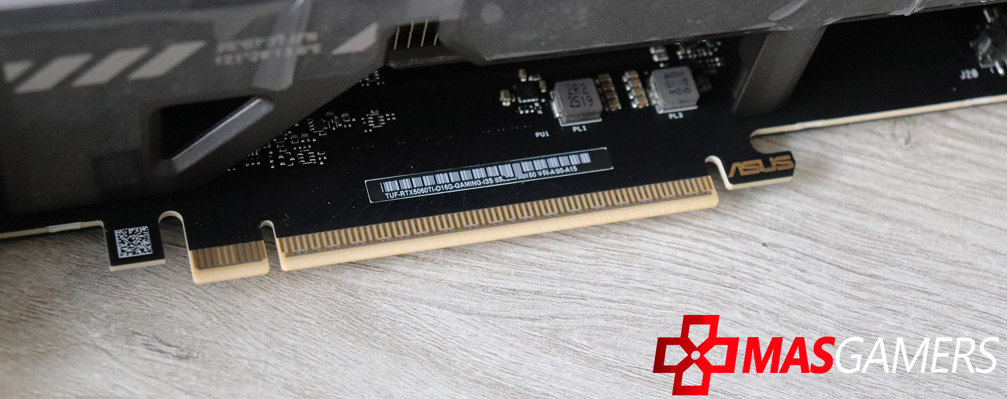 La ASUS TUF Gaming RTX 5060 Ti se conecta a la placa base mediante una interfaz PCI Express 5.0 x16, lo que representa la más reciente evolución en conectividad para tarjetas gráficas. Pero lo curioso es que solo requiere una conexión PCI Express 5.0 x8.