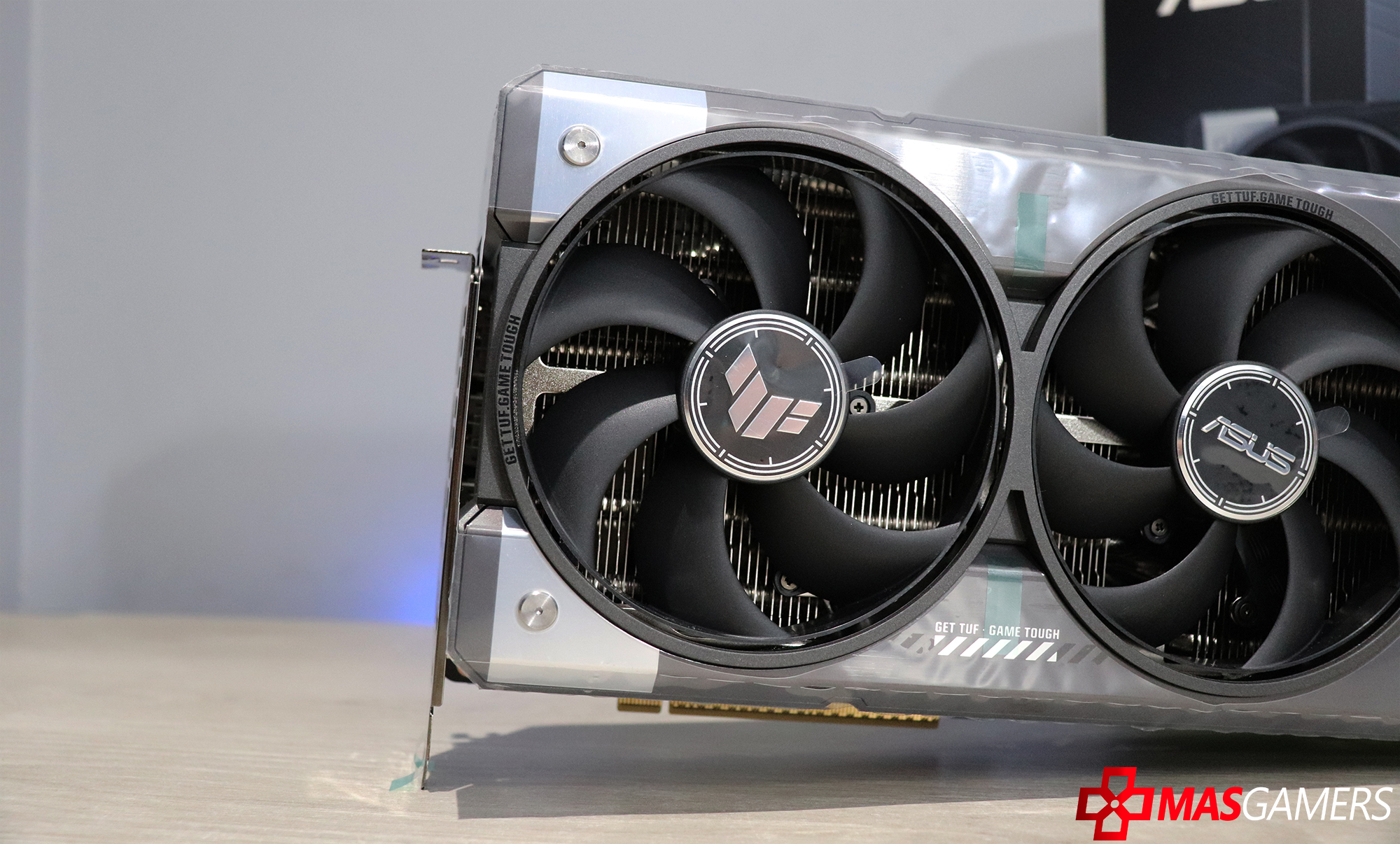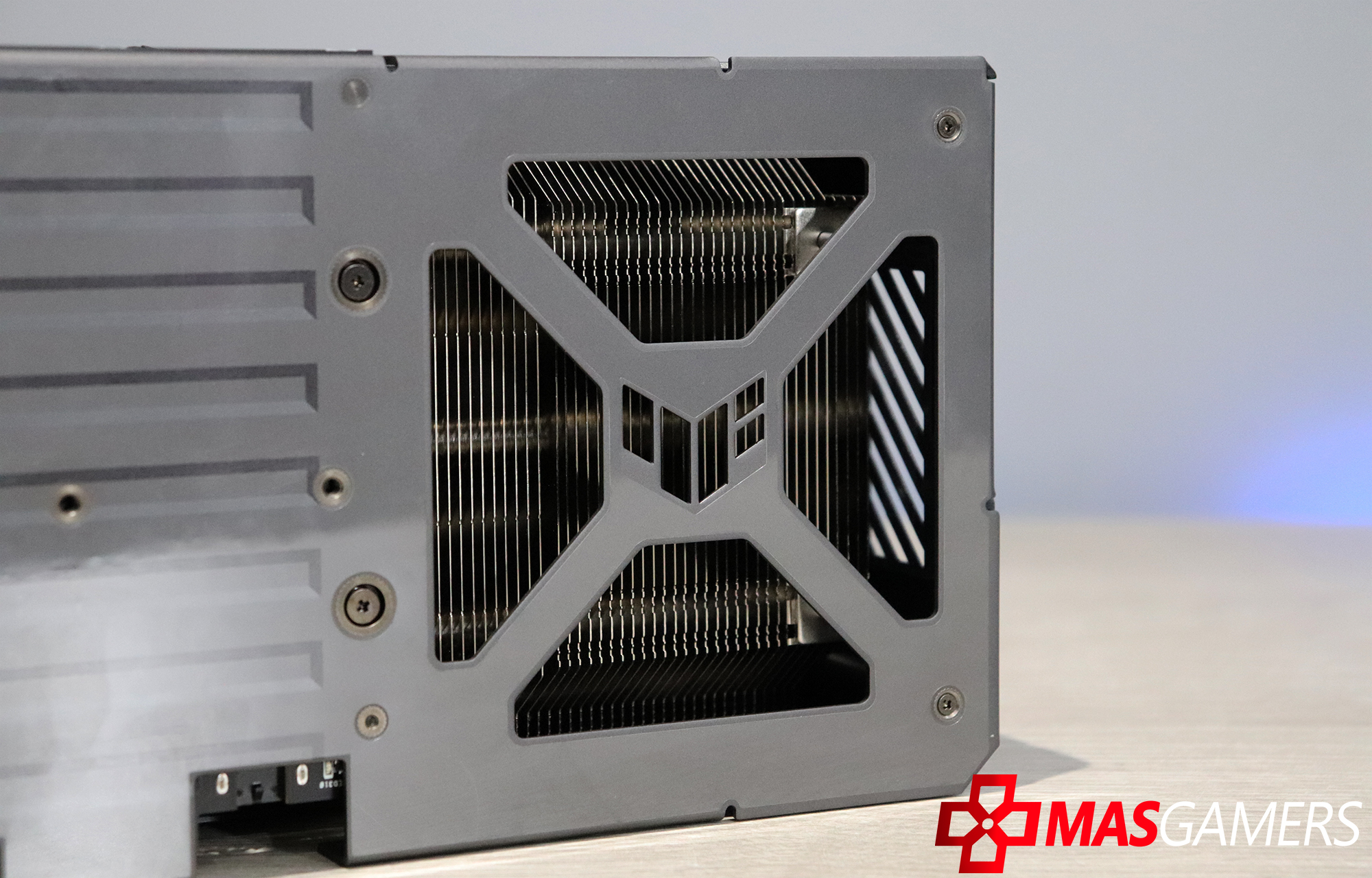 En este toma podemos apreciar «MaxContact» que es un proceso de fabricación especial de ASUS que amplía eficazmente la superficie del disipador de calor situado sobre la GPU en un 5 %, en comparación con los diseños tradicionales. Esto reduce la temperatura hasta en 2 °C.