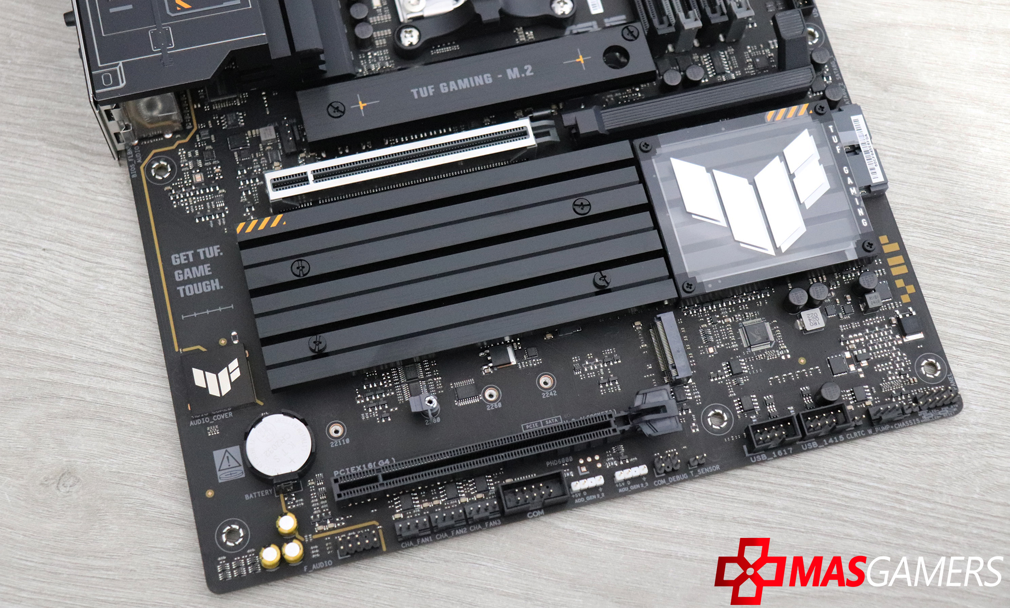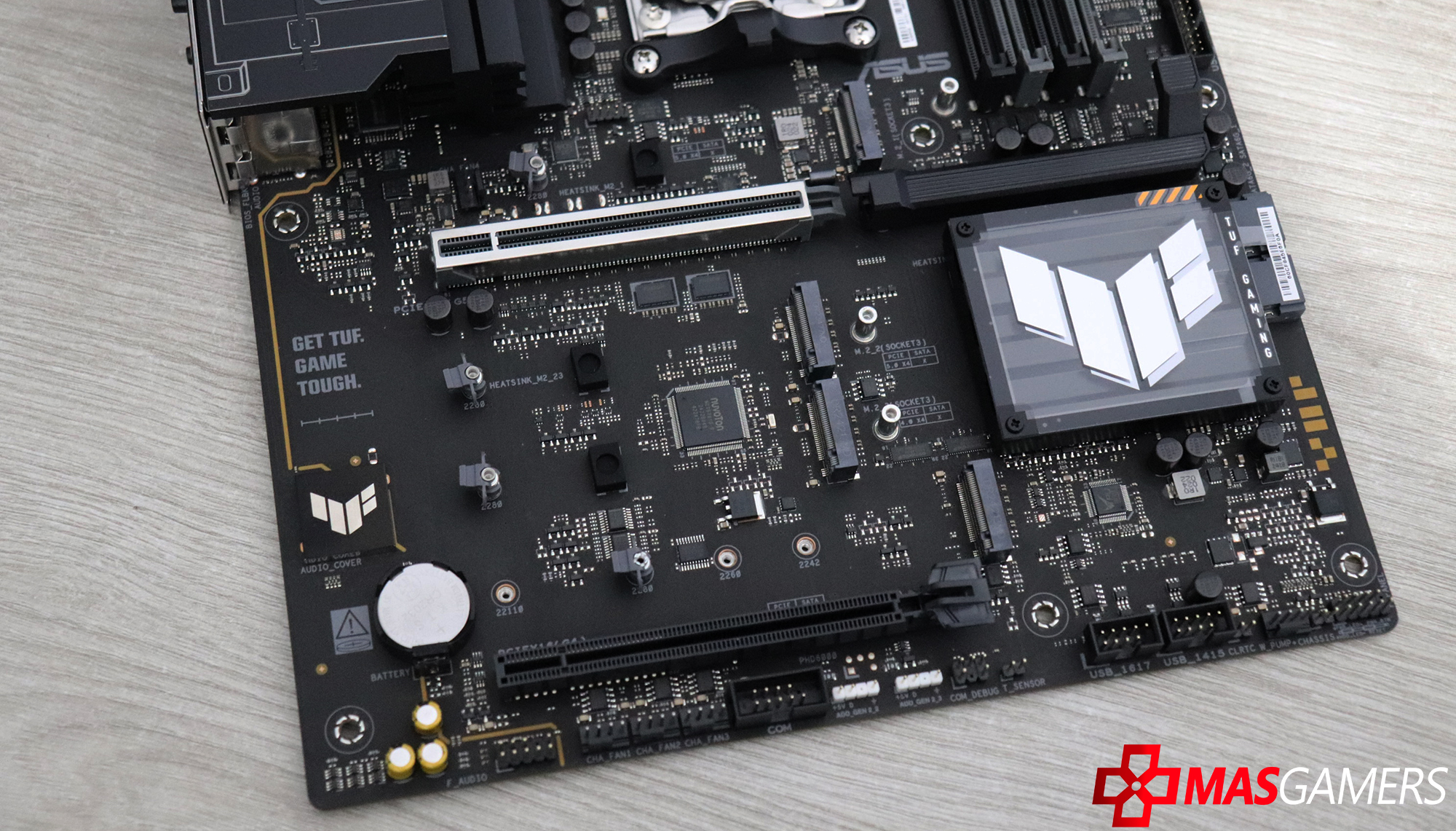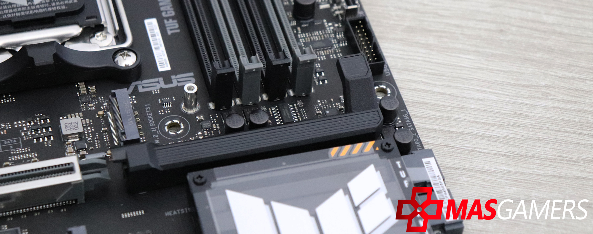 Removiendo los disipadores encontramos los slots para unidades M.2, de las cuales 2 cuentan con soporte para unidades PCIe 5.0 y 2 de ellos soportan PCIe 4.0.