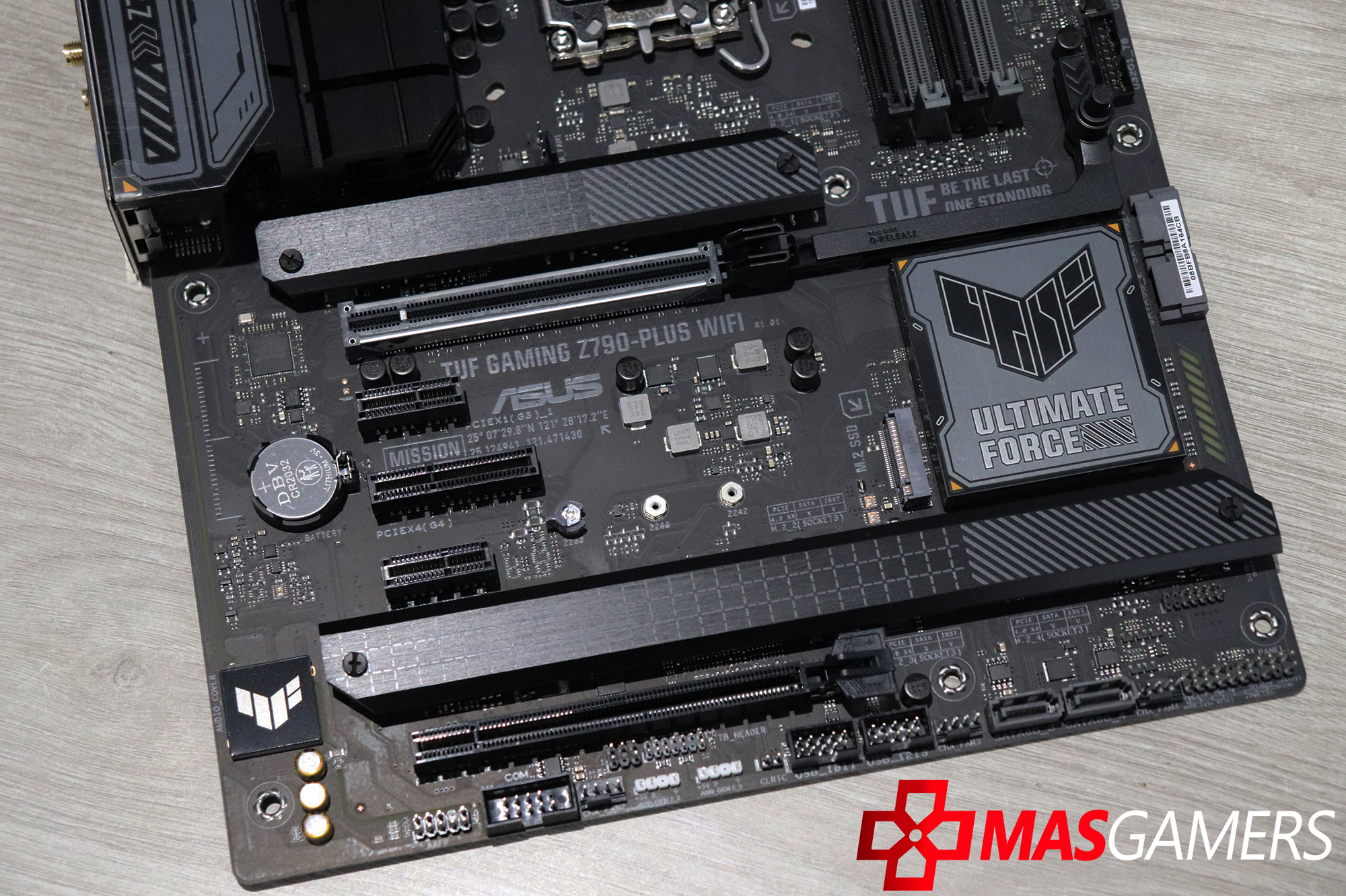 Viendo un poco más de cerca el tema de expansión nos encontramos con 2 puertos PCIe de los cuales solo el primer x16 trabaja con el protocolo PCIe 5.0 y segundo a x4 en PCIe 4.0. También encontramos 2 puertos PCIe x1 y otro puerto PCIe x4.