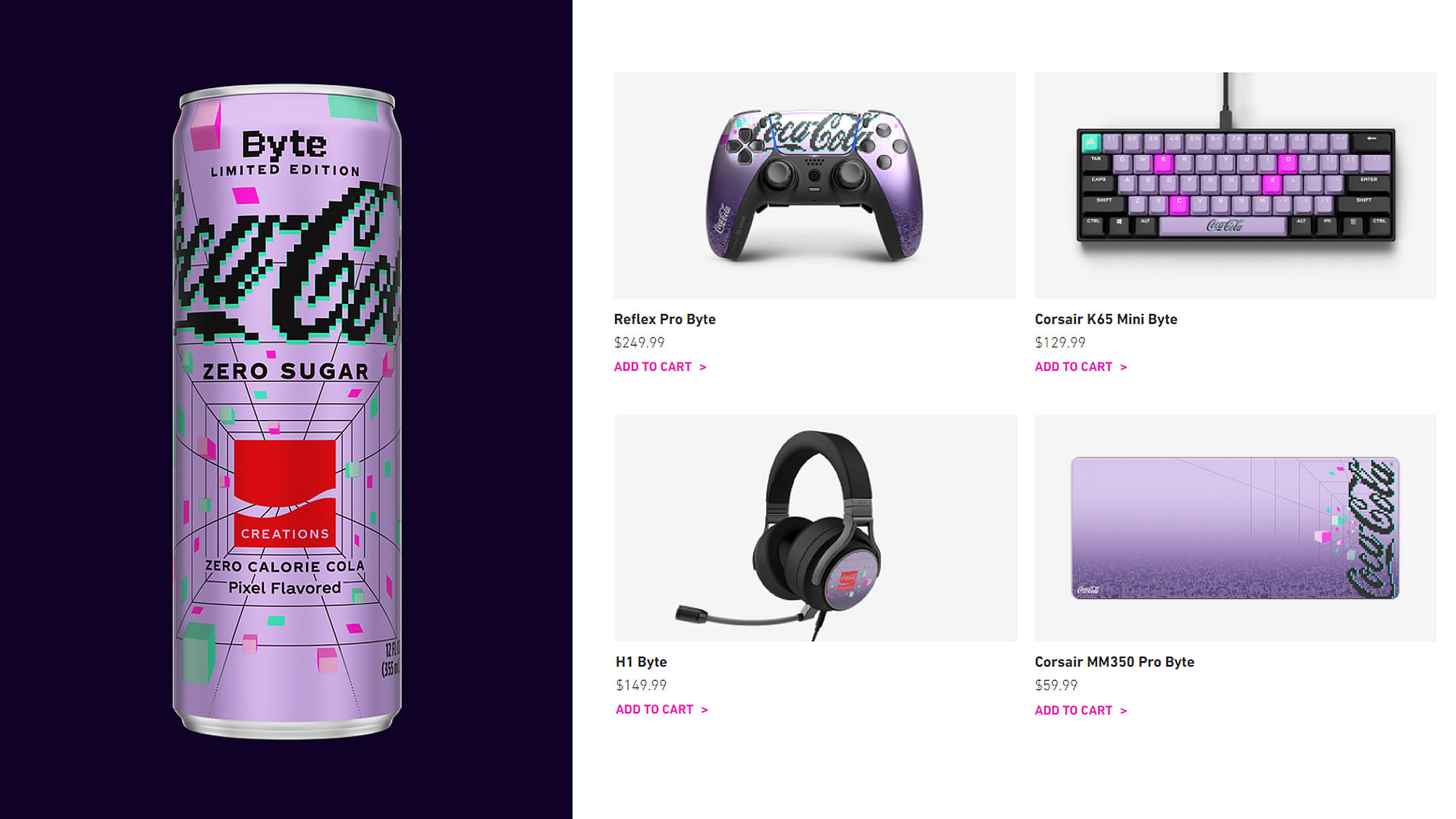 Además de Byte, Coca-Cola ha lanzado otros proyectos relacionados al mundo gamer. En 2021 se asociaron con las creadoras de periféricos Corsair y SCUF para diseñar teclados, audífonos y controles premium, con precios que van desde los $60 hasta los $250 dólares. Todos estos productos están a la venta en su página web.